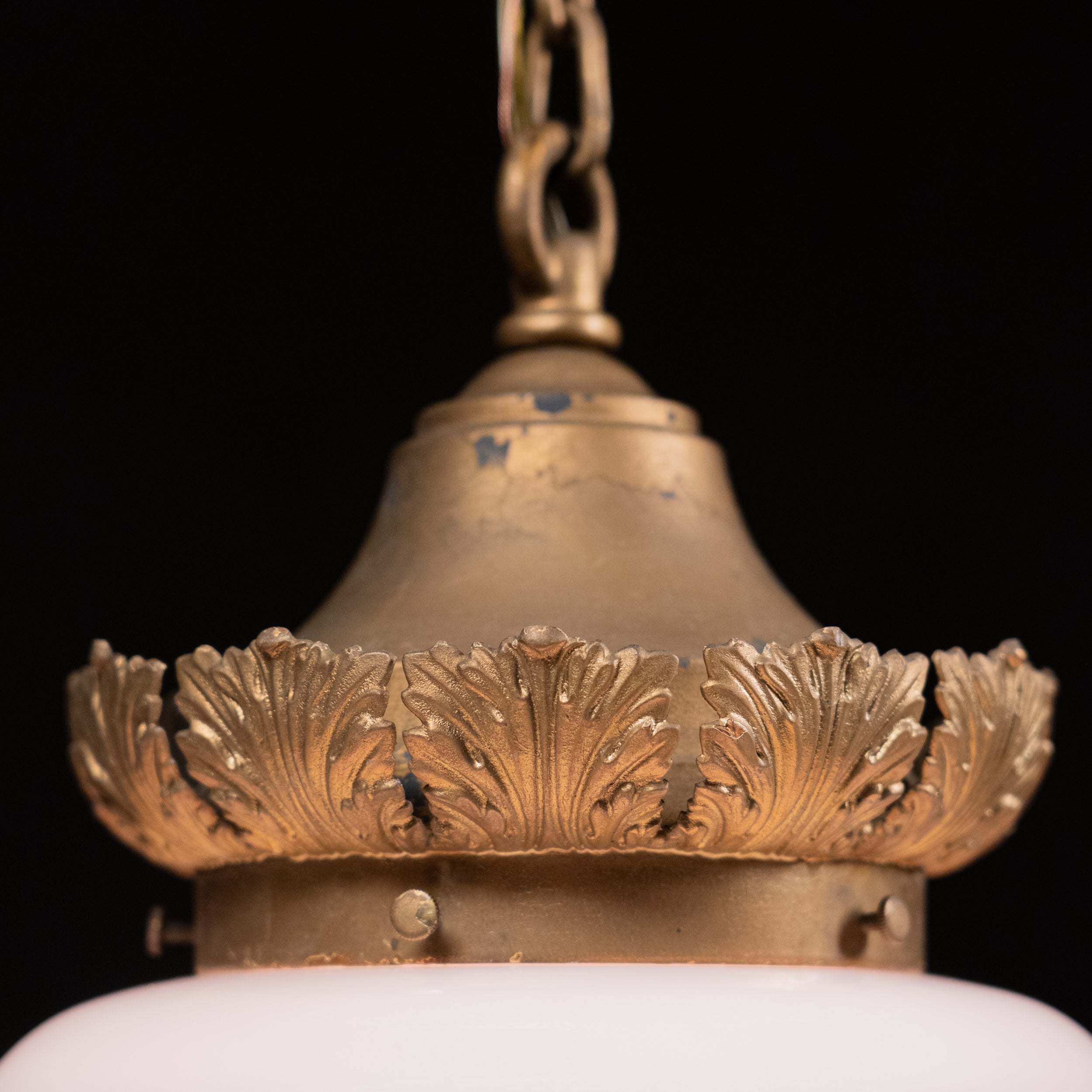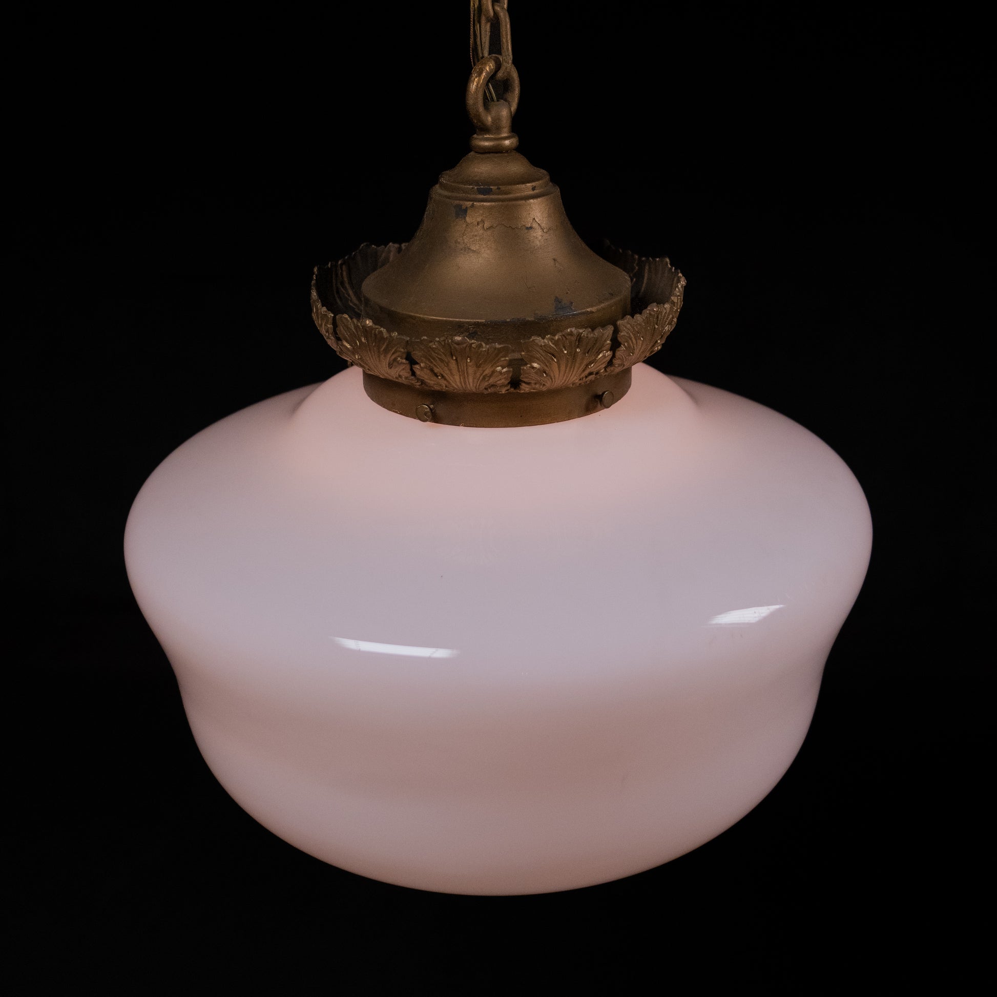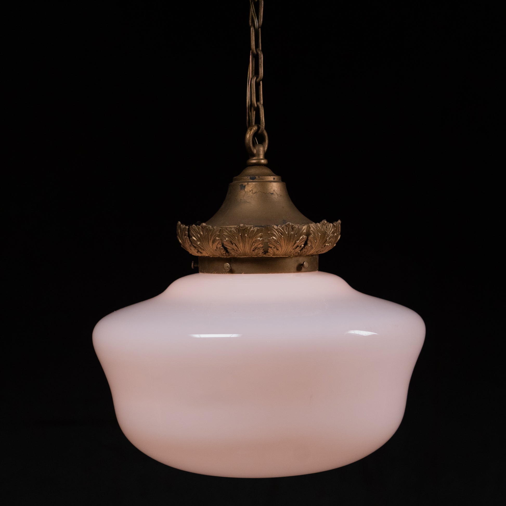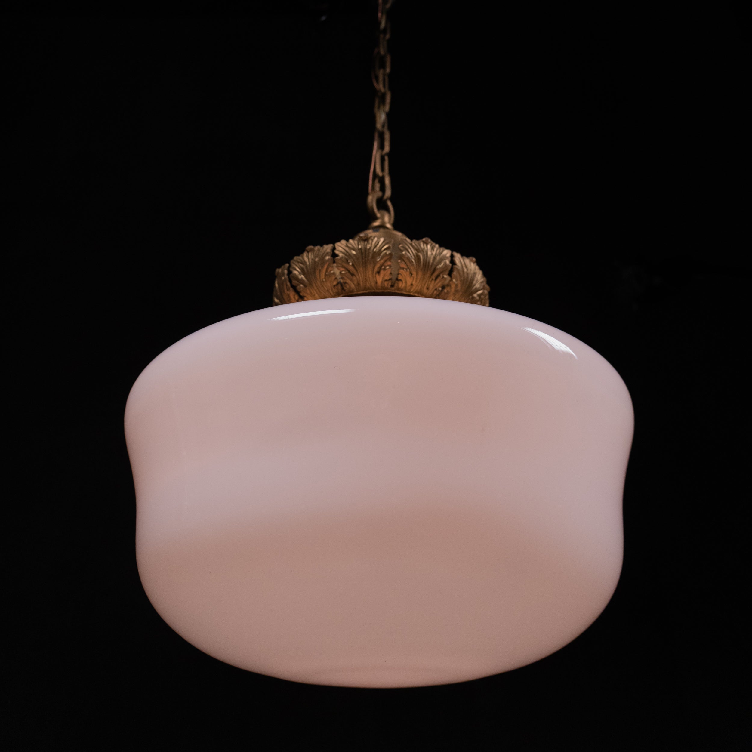 1920 set of 8 brass bank milkglass pendant lights
