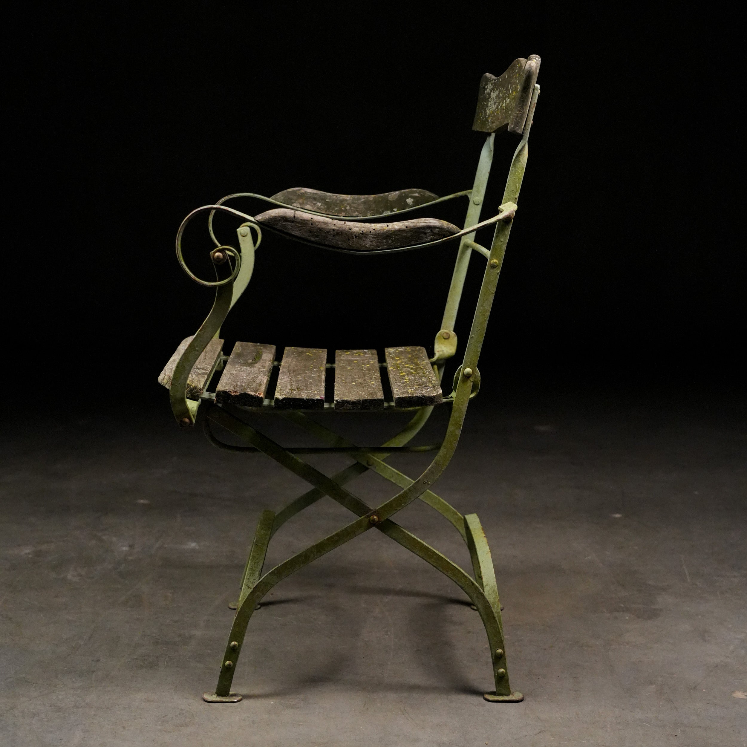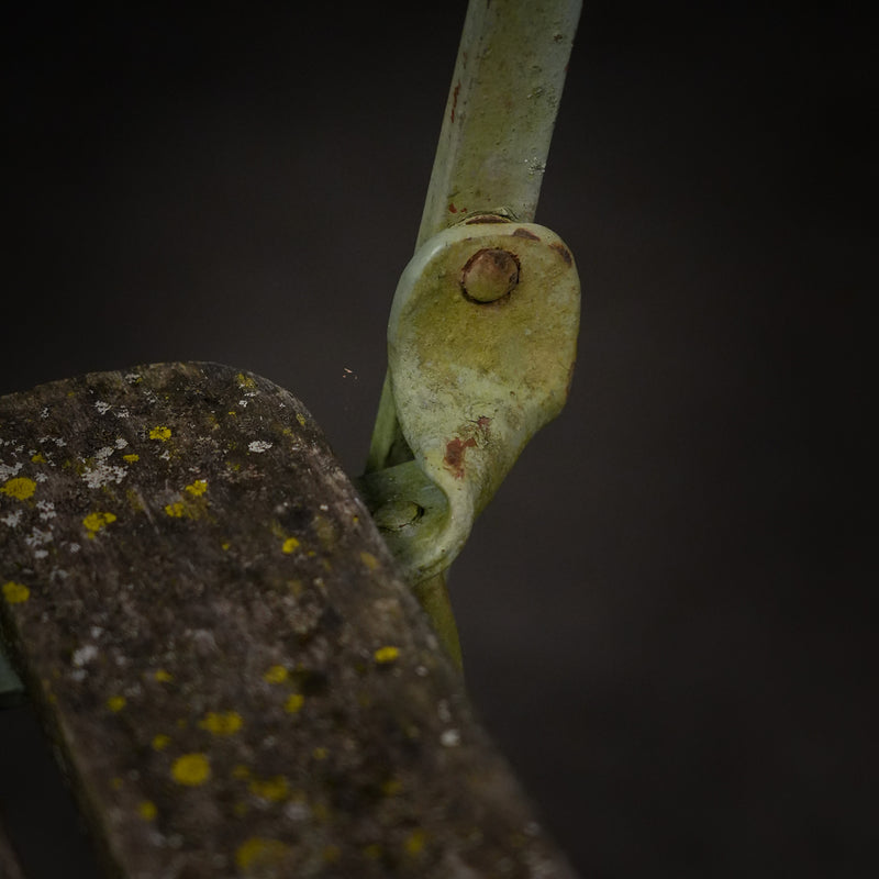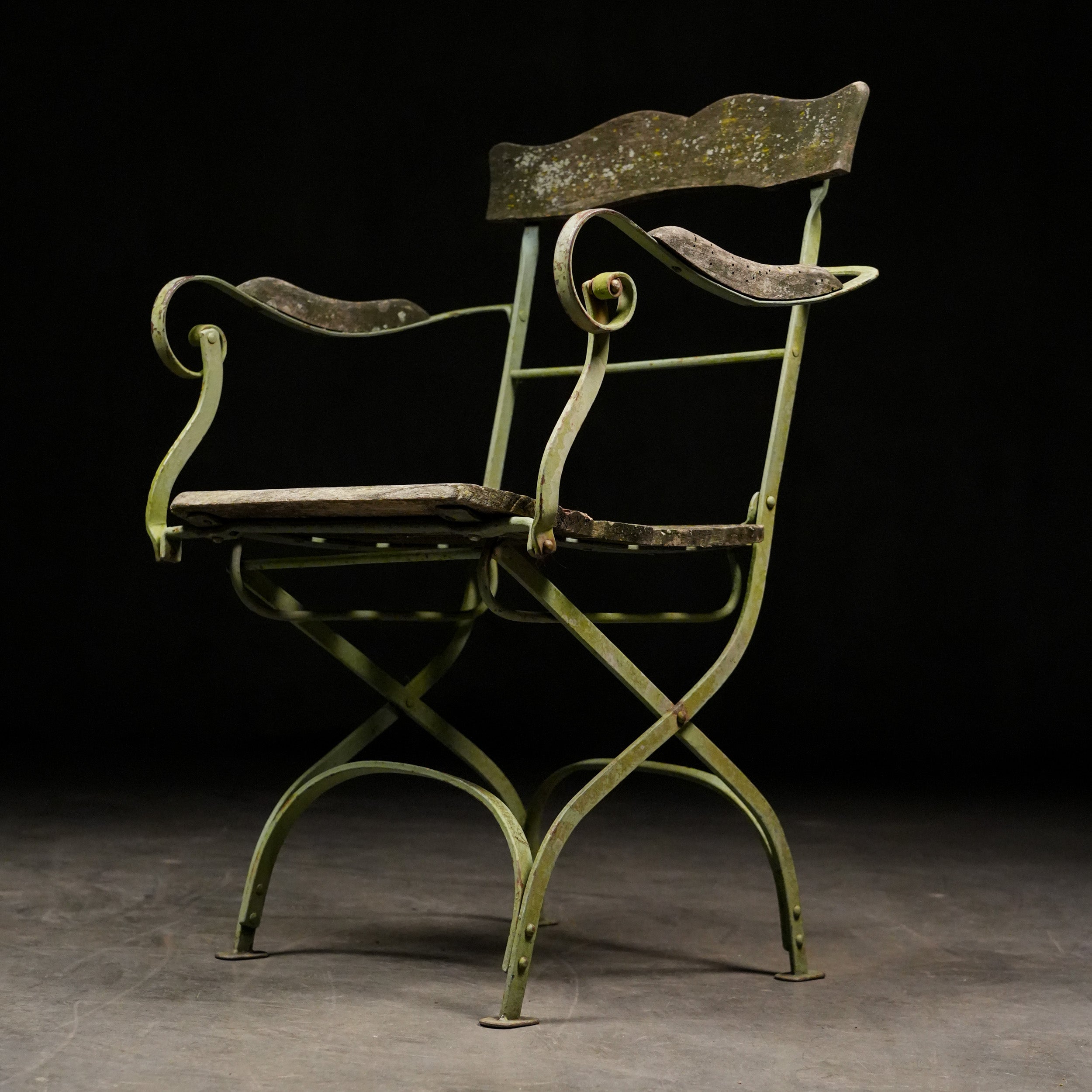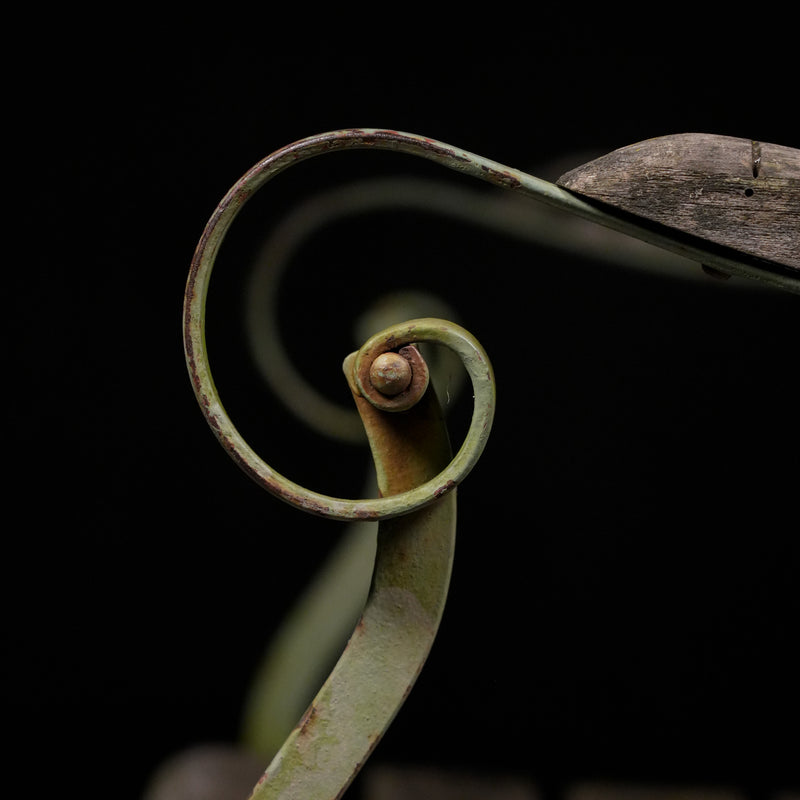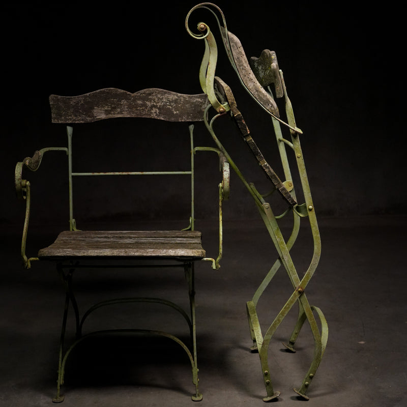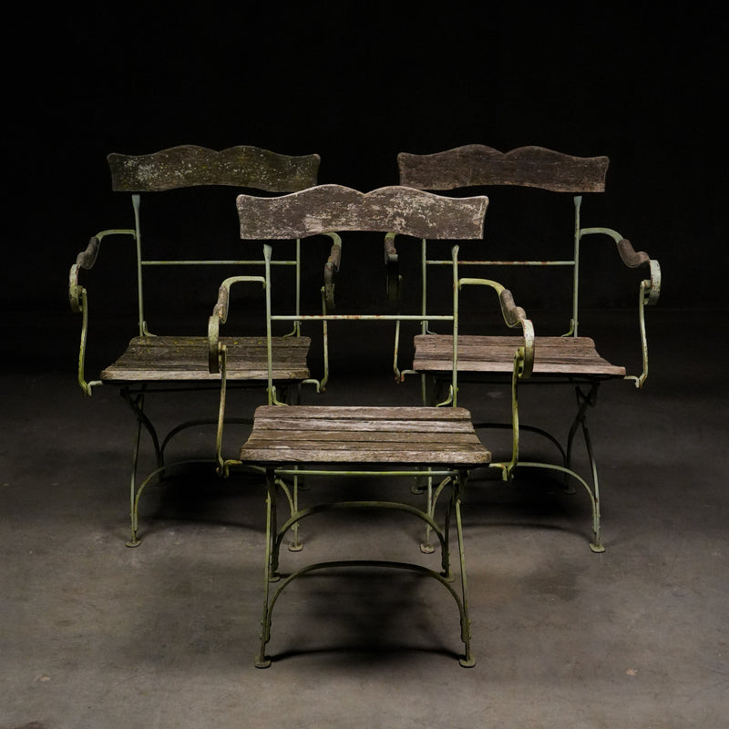 These have solid beech wood slats, retaining old green finish with that authentic French garden vibe.