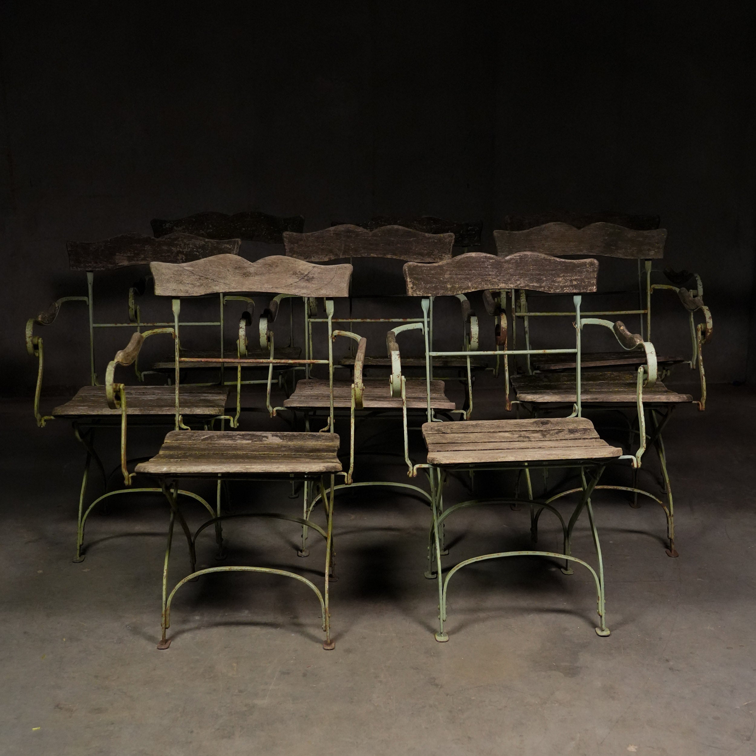 Set of Eight 1920 French Garden Chairs