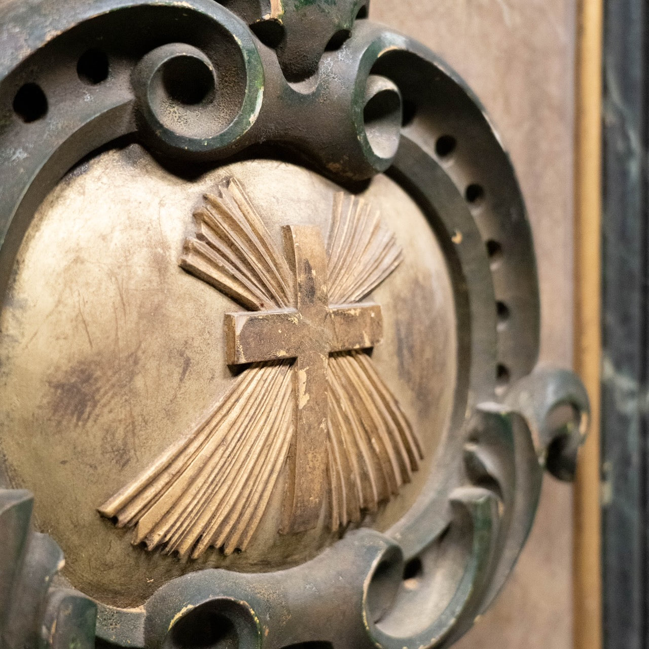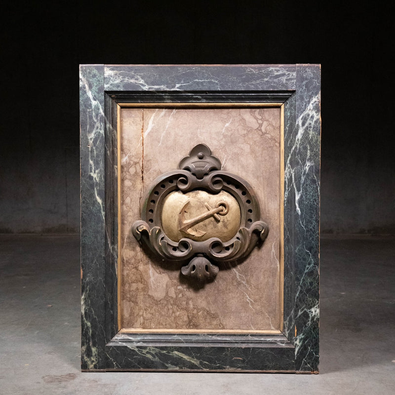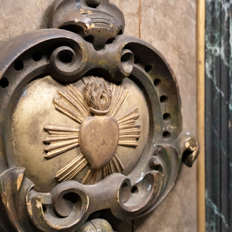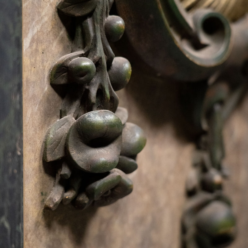 They don’t get much better , solid wood carved iconic religious art in faux painted marble frames , beautiful details all in untouched as found condition . These are some of the best we have seen salvaged years ago from a church in Chicago.