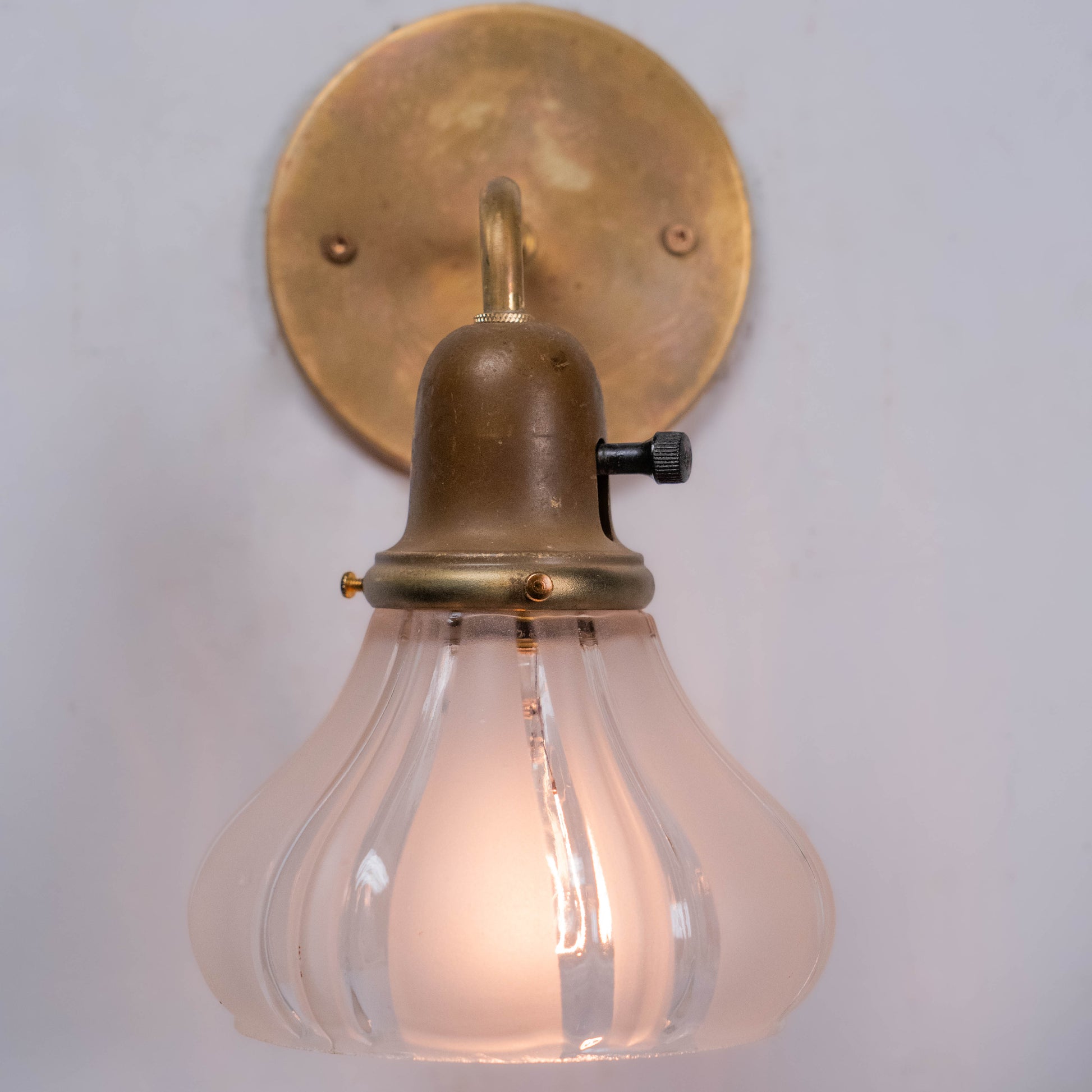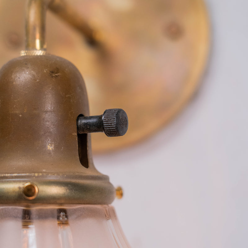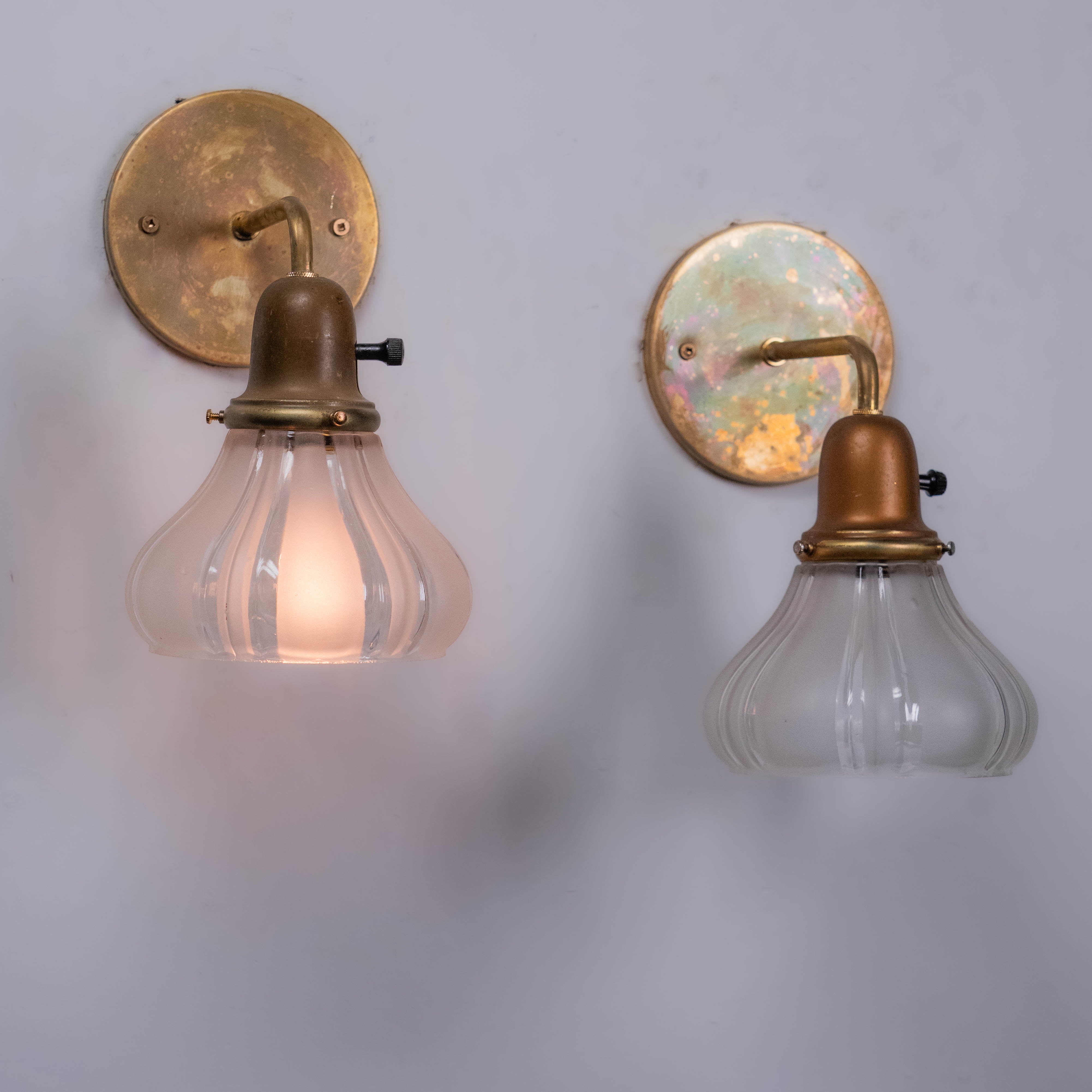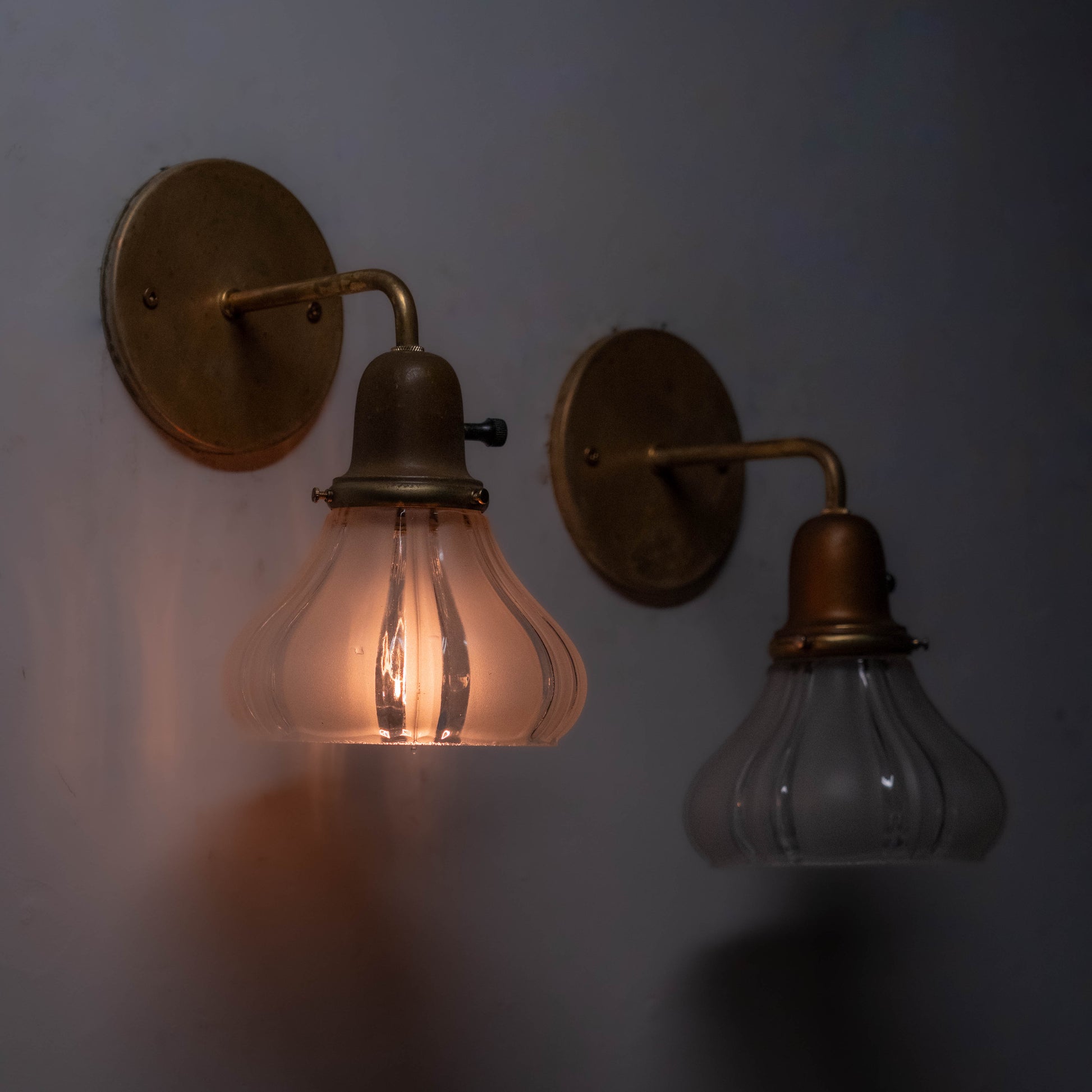 1910 Antique French-Style Brass Wall Sconce lights with Ribbed Glass Shades