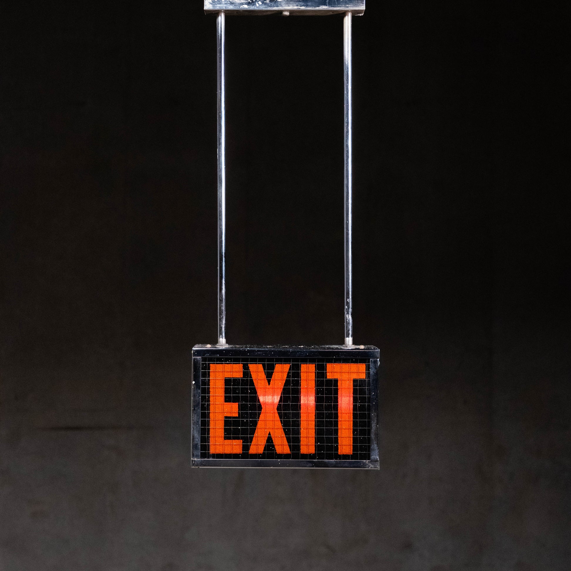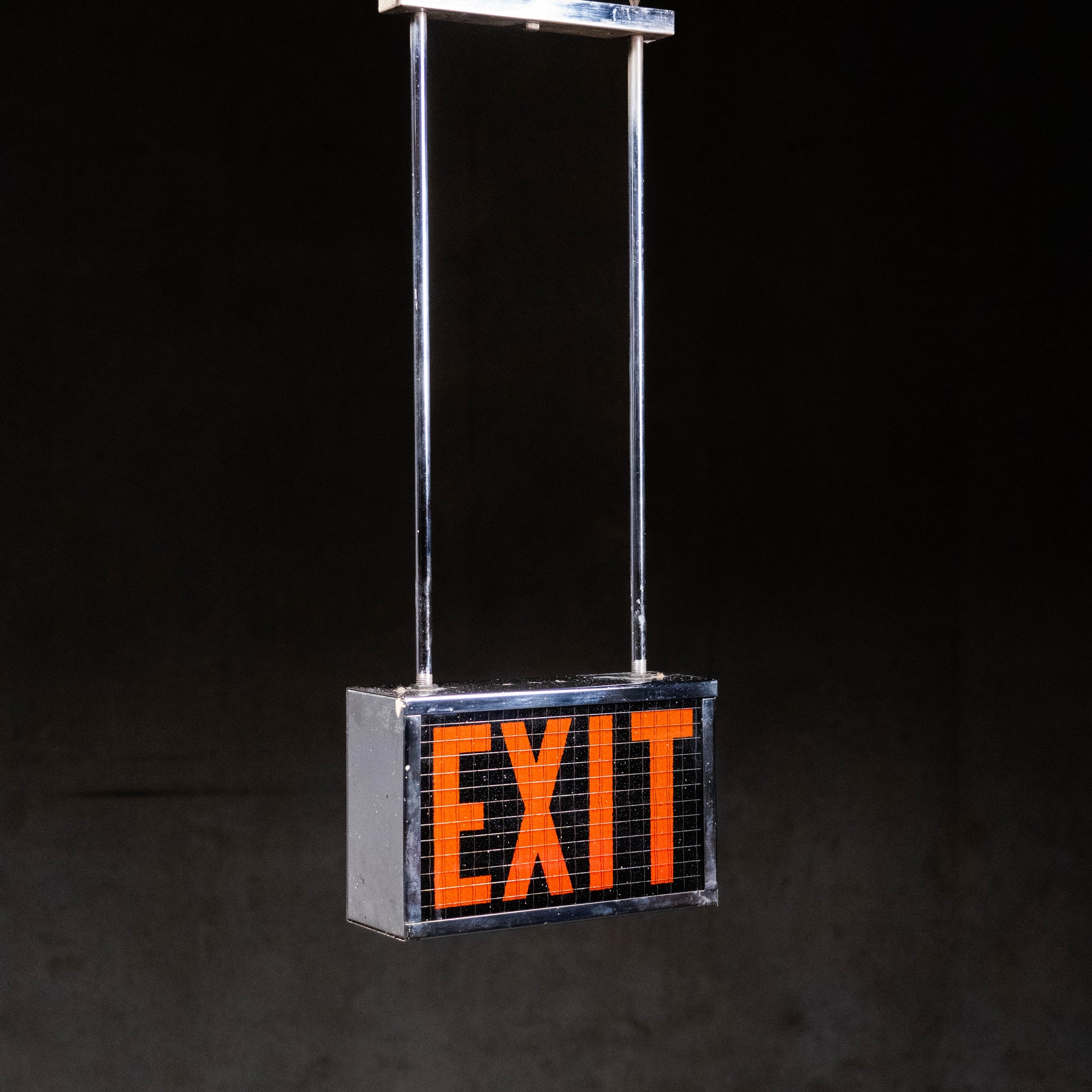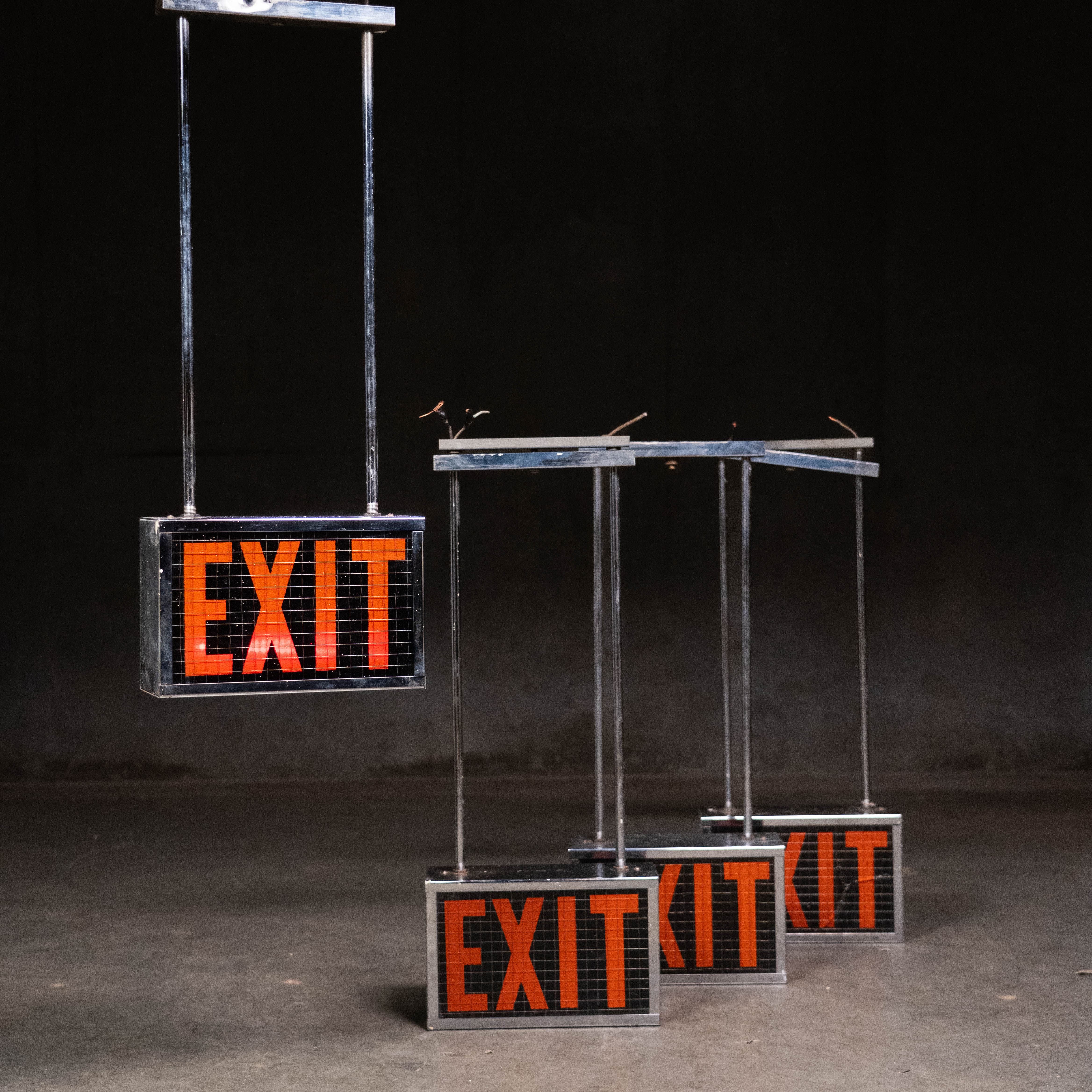Salvaged from a school built in 1906 these are great with chrome frames, two pipe connection with coloured glass Exit.