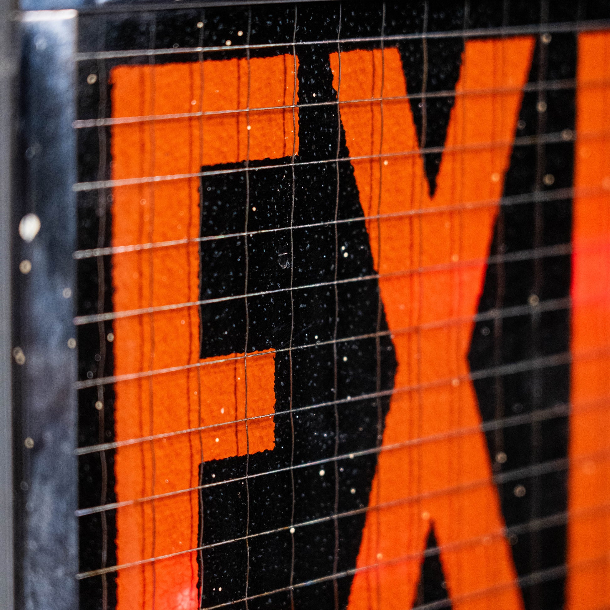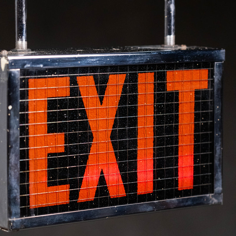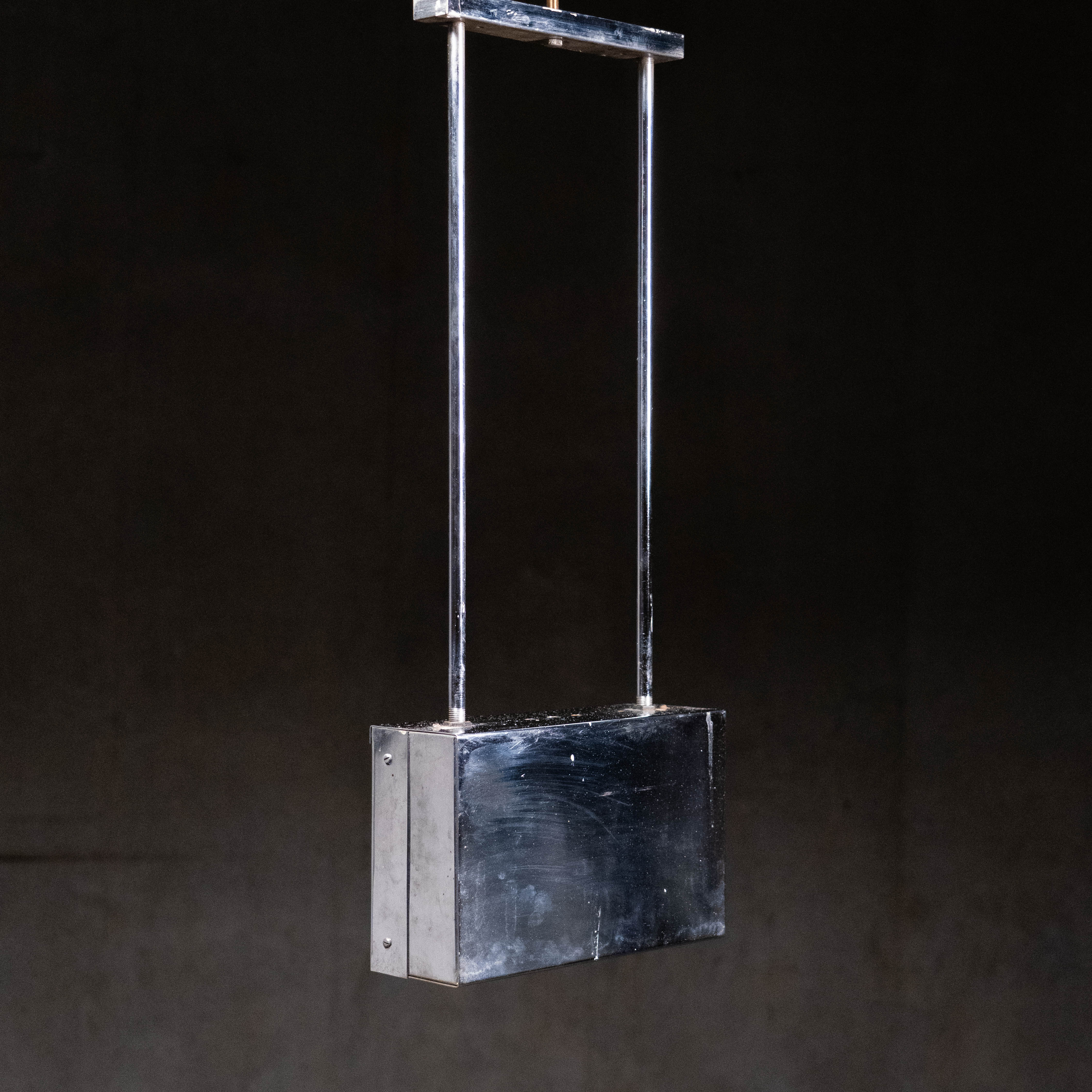 Salvaged from a school built in 1906 these are great with chrome frames, two pipe connection with coloured glass Exit.