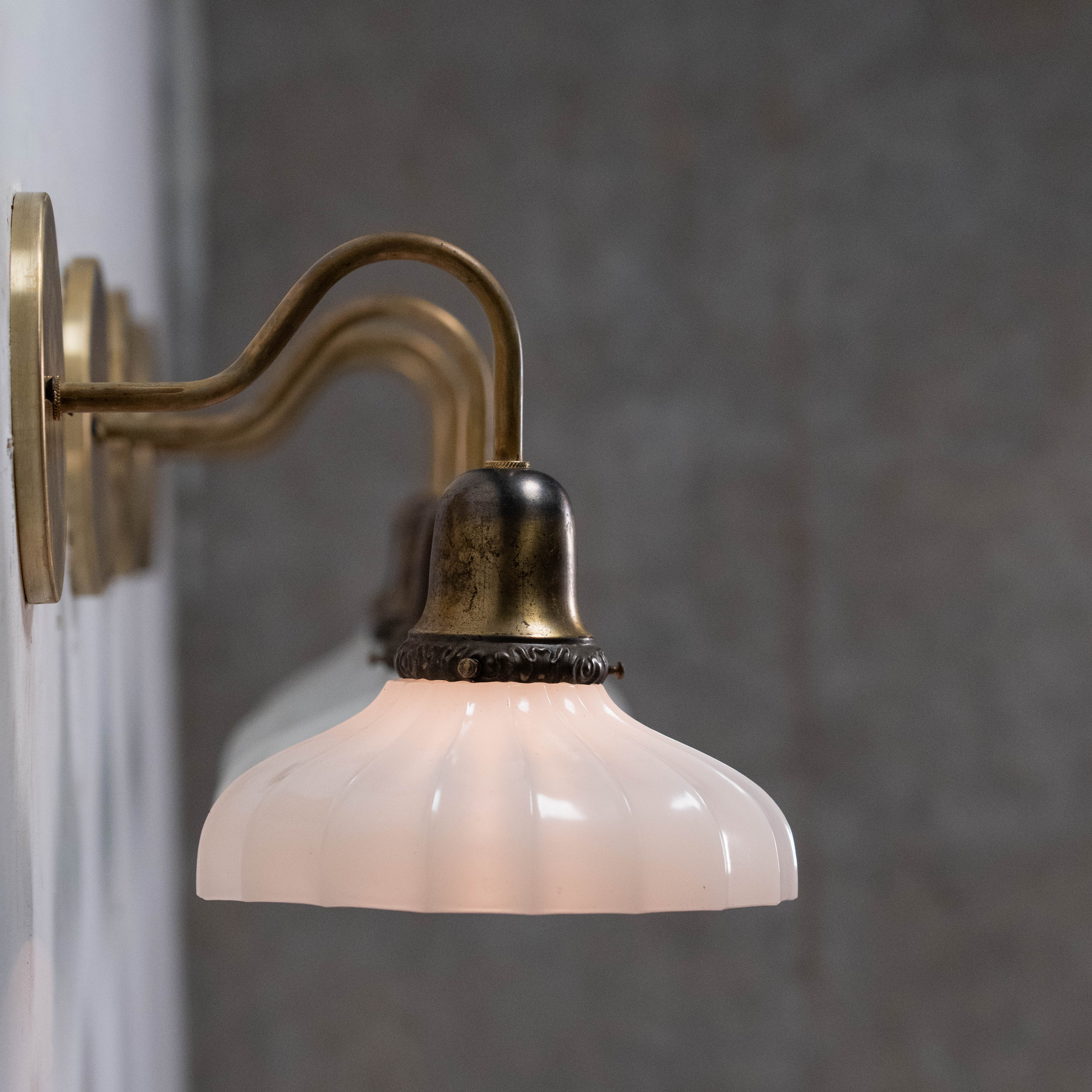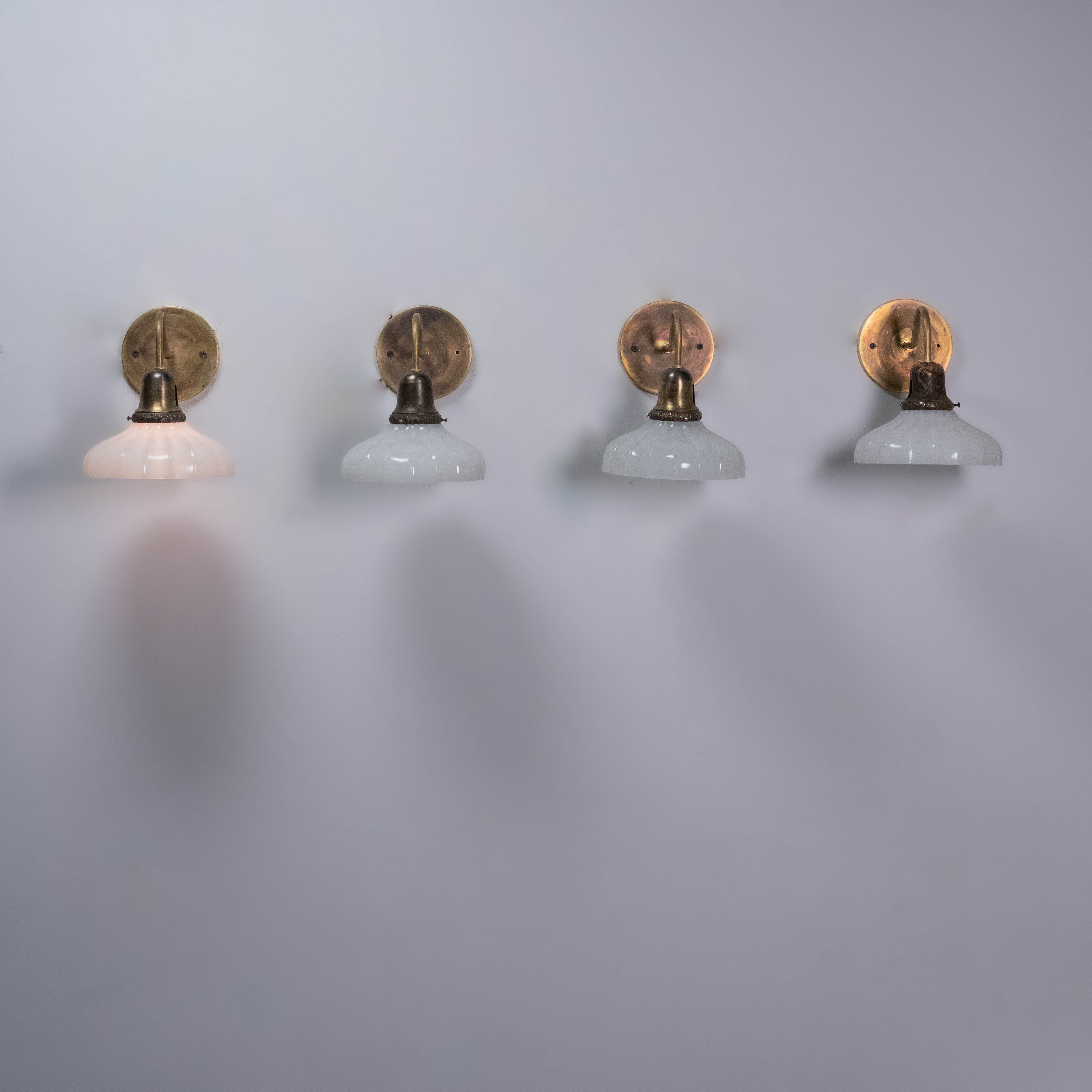 1930 Set of Four Brass Opal Milk Glass Sconces