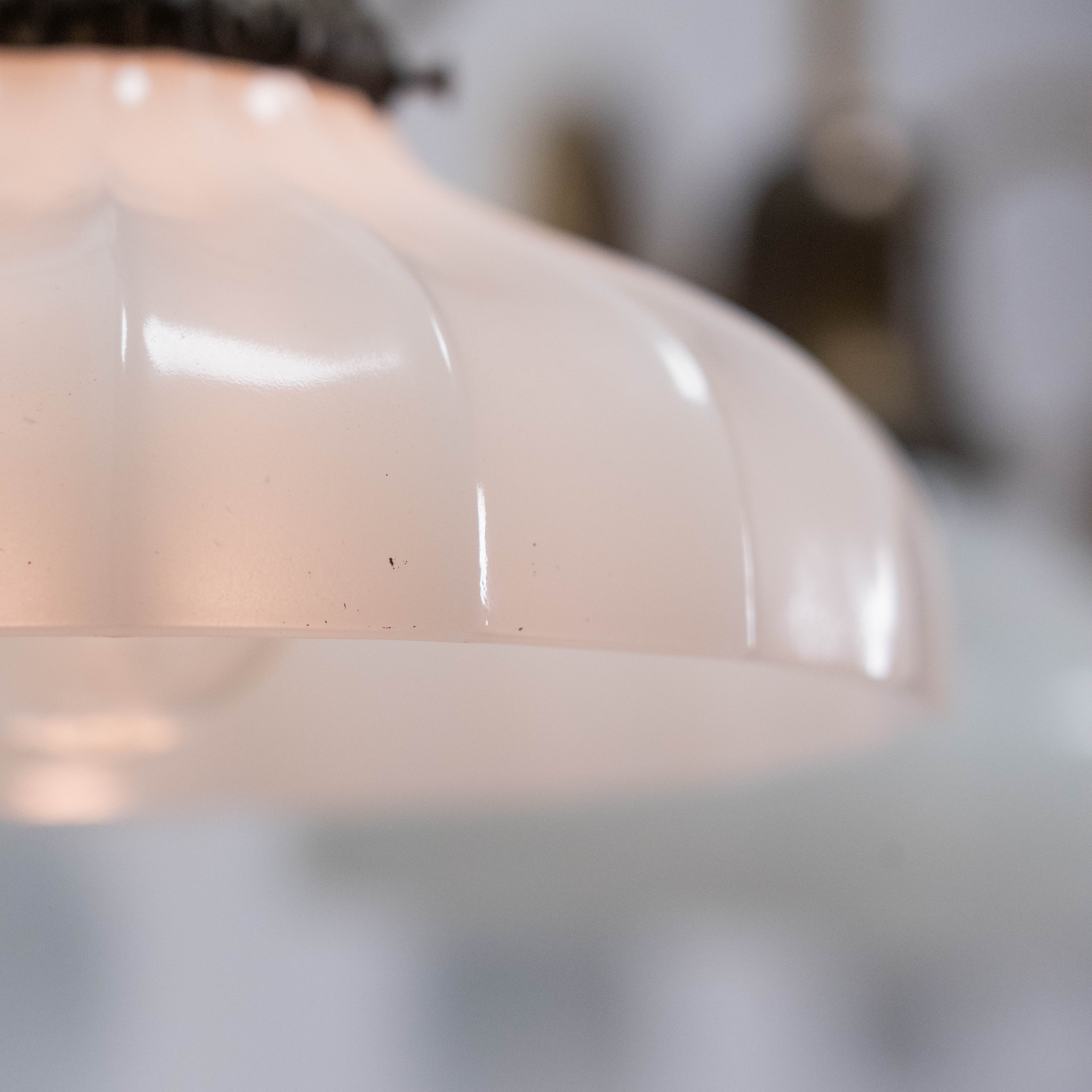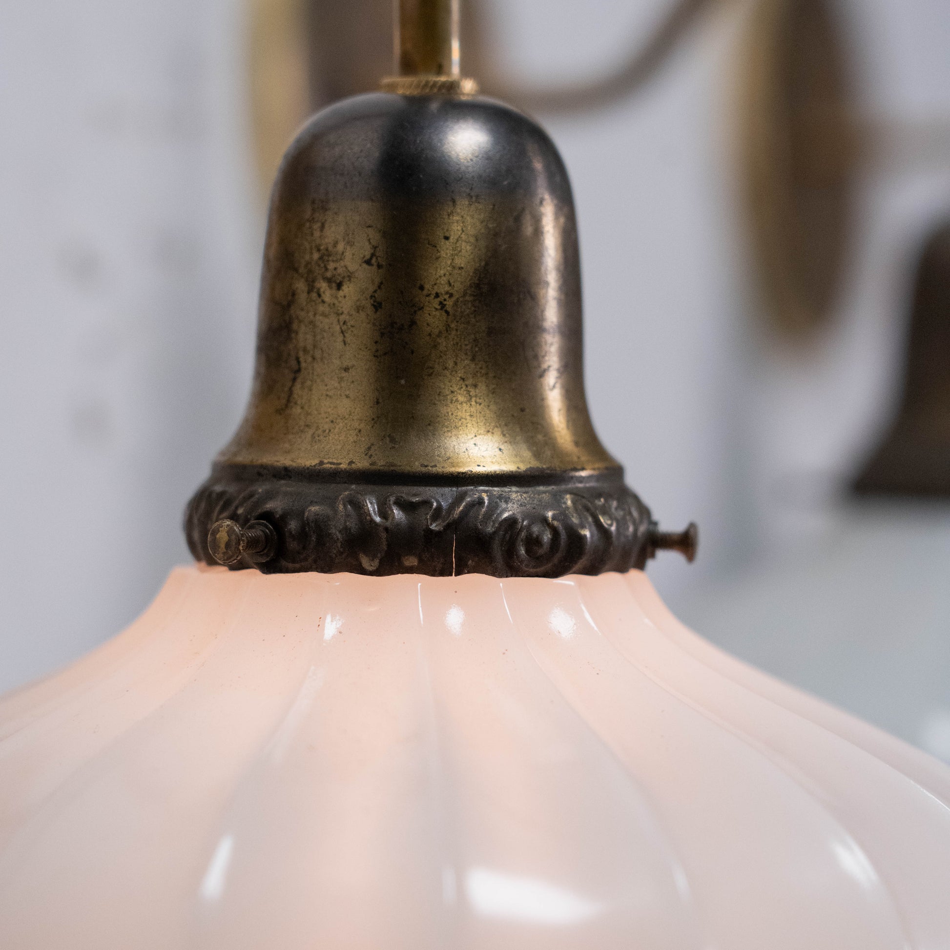 Real nice heavy glass shades on brass hardware. Lights were refurbished and rewired.