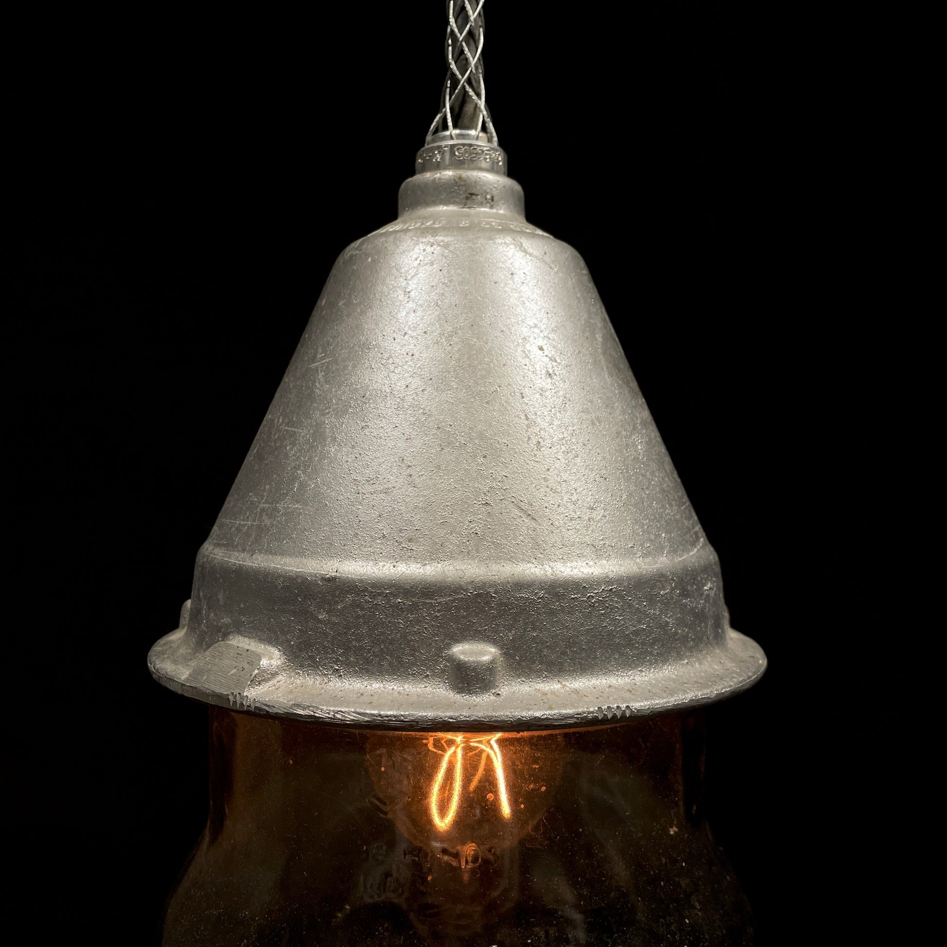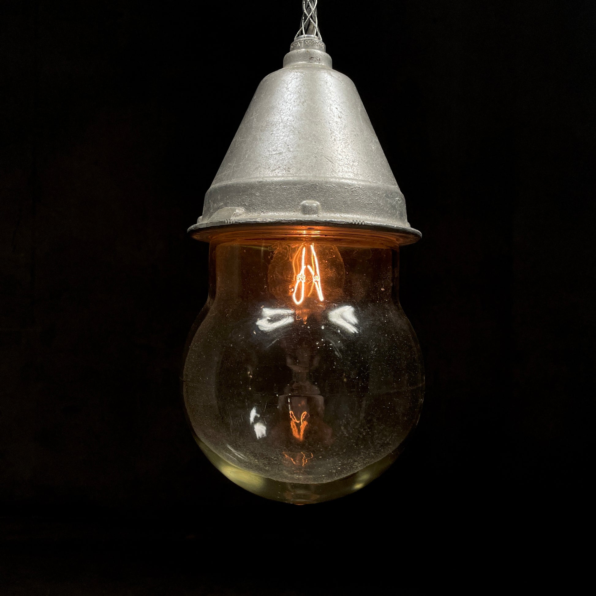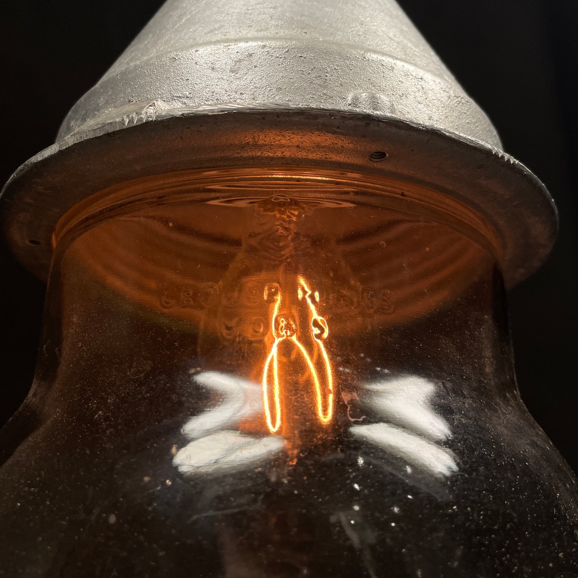 A group of three industrial Crouse hind pendant lights, rewired and fully functional.