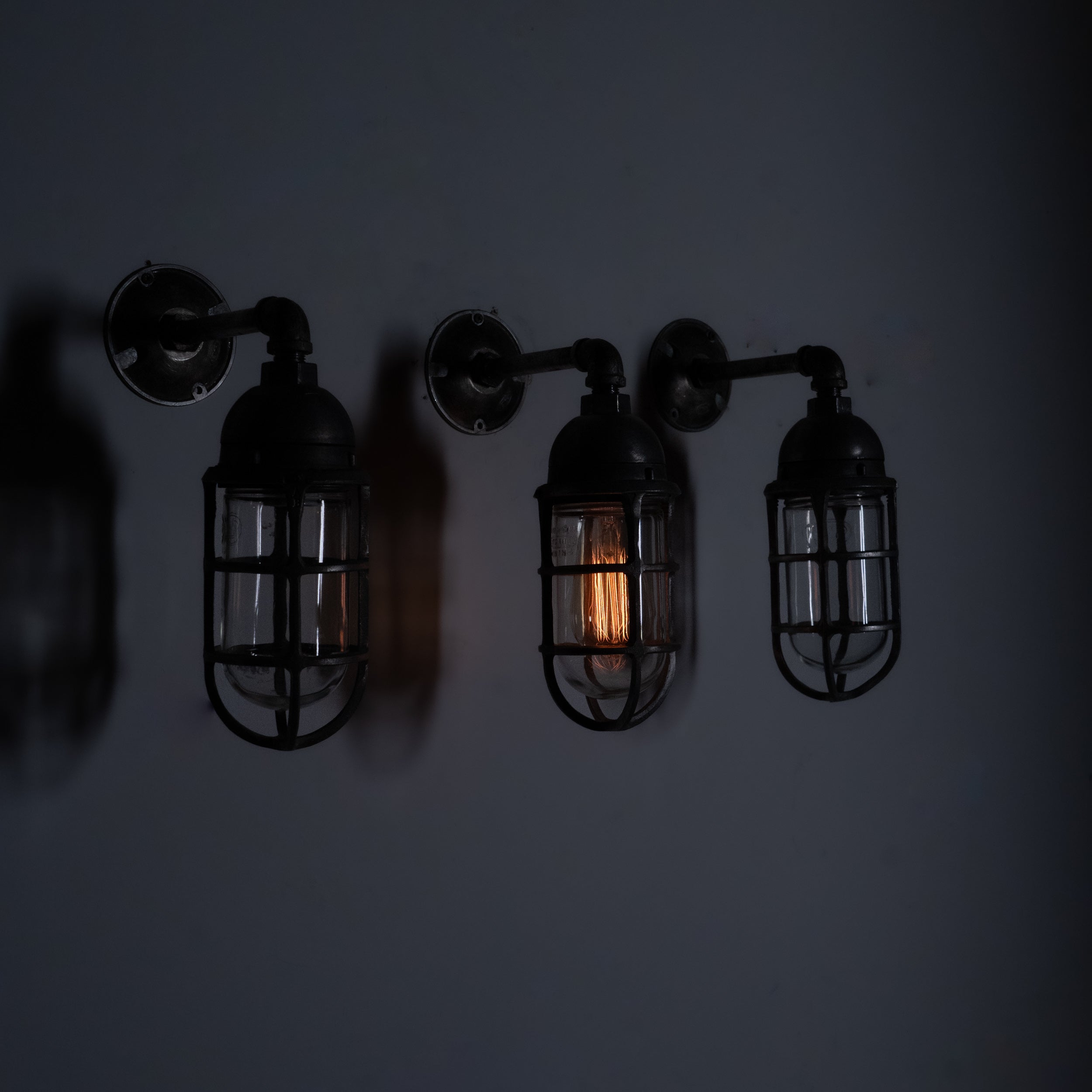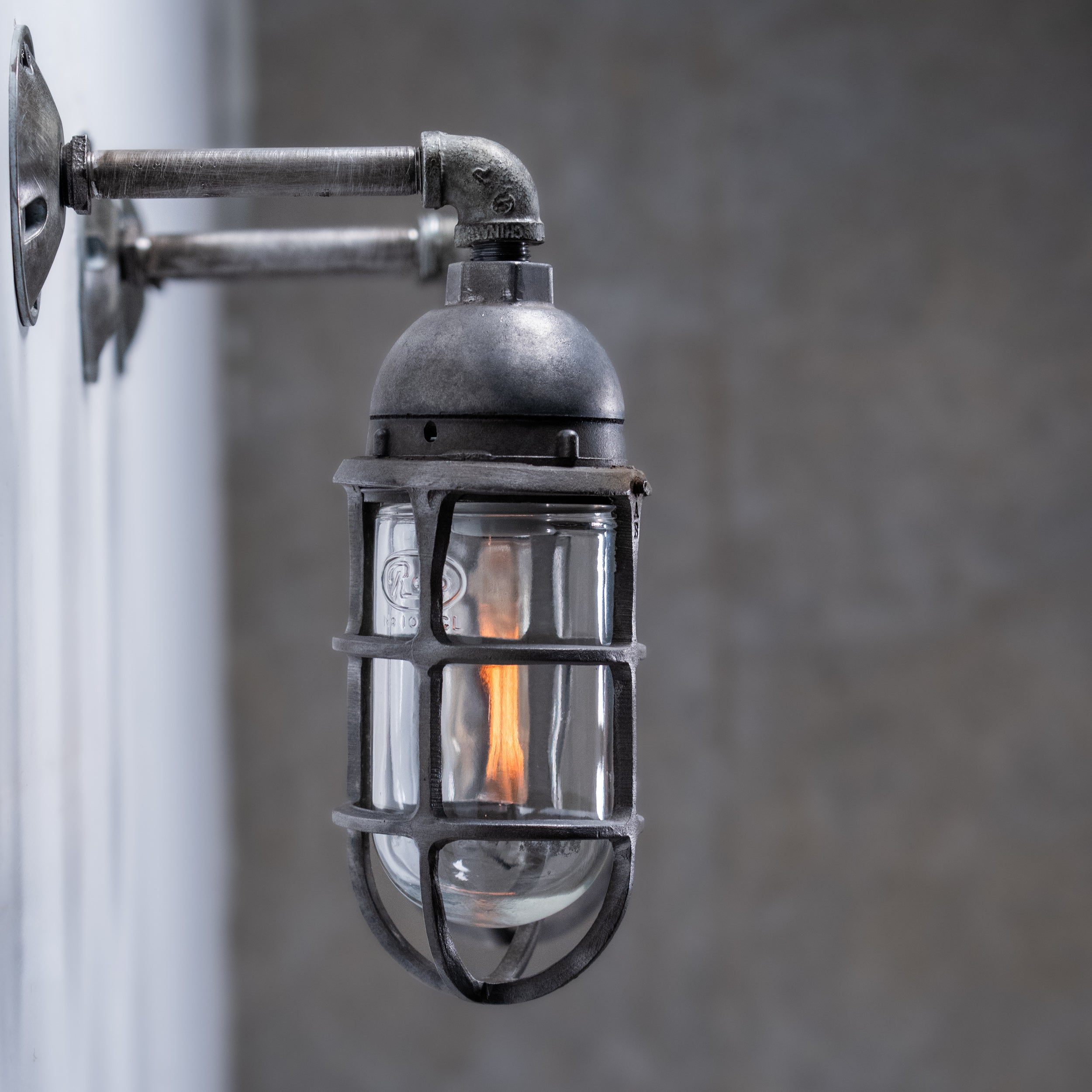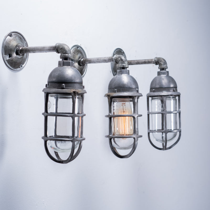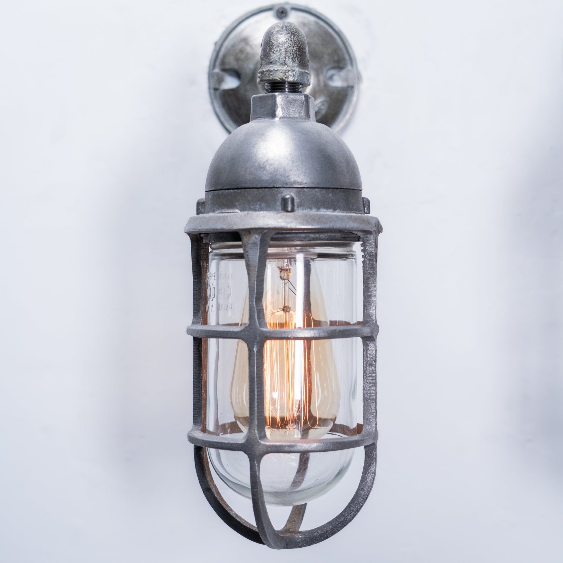 1950 Caged Globe Industrial Sconce