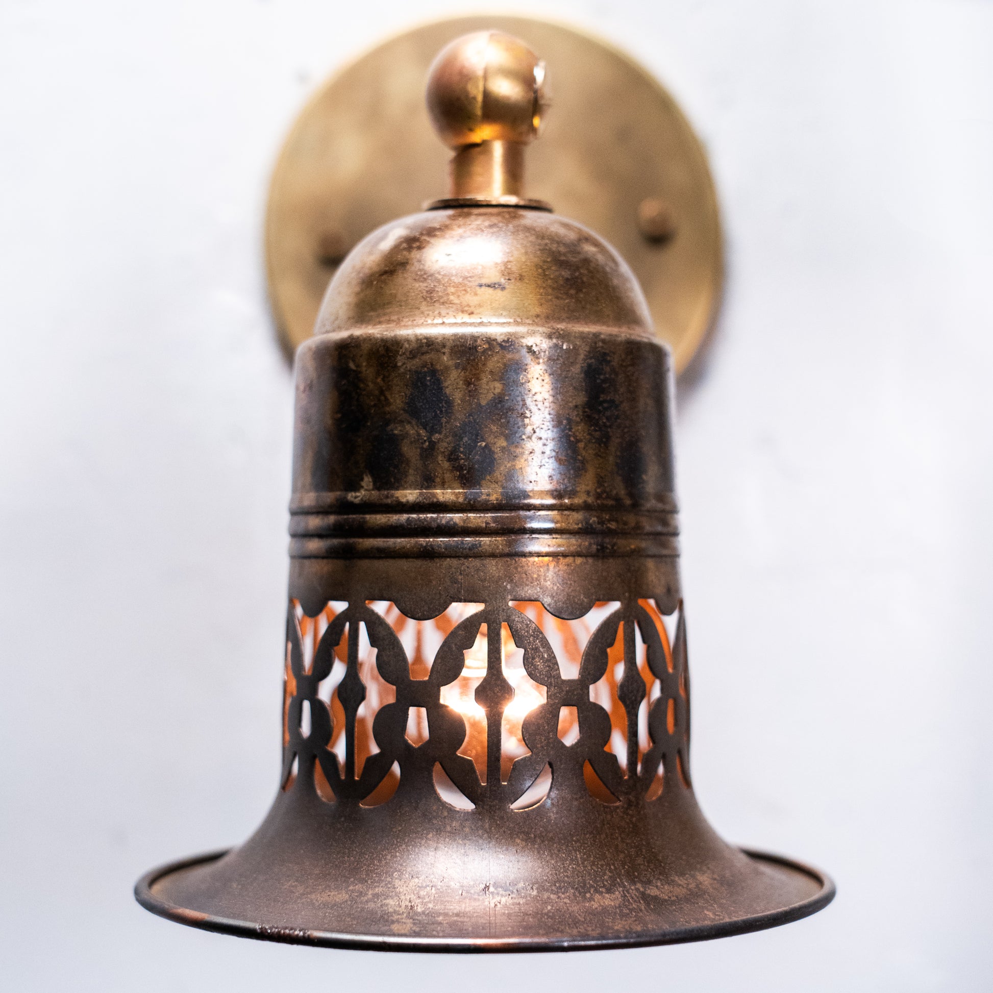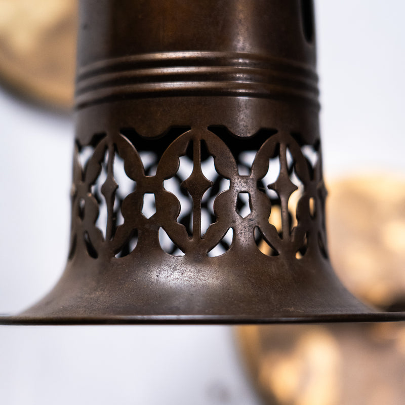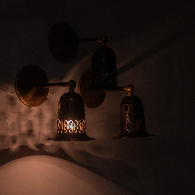 Early American Industrial Wall Sconces with Pierced brass Shades, c. 1915
