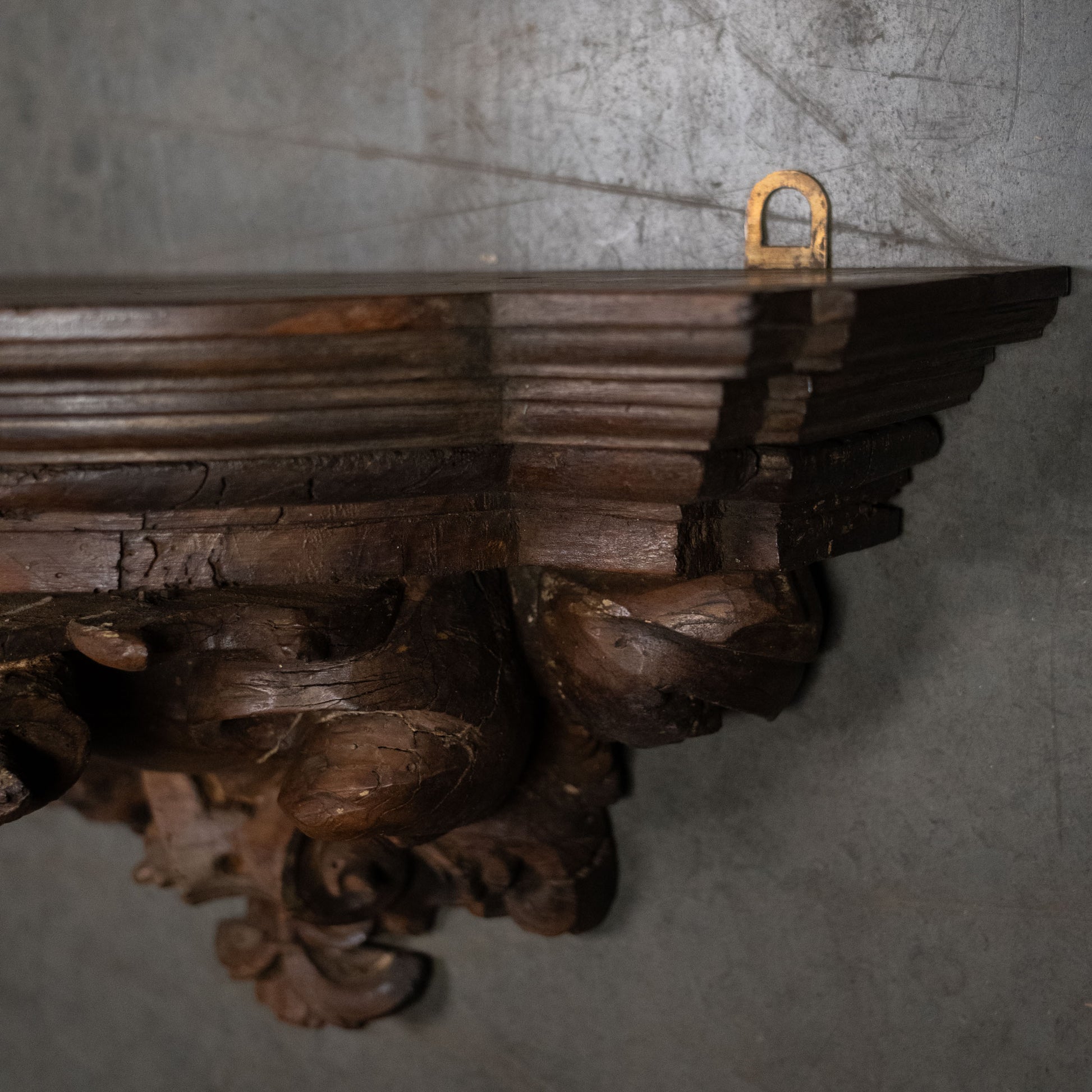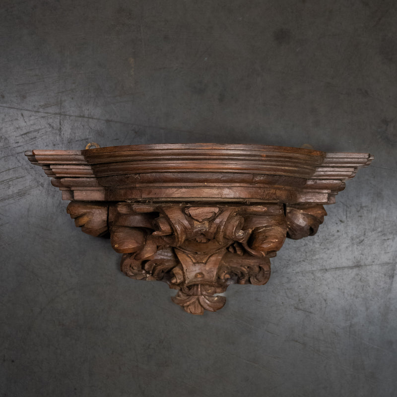 A great carved wall shelf, likely from a chateau or church. Showing hand carved details and nice patina. Excellent to pop a nice piece of art on.