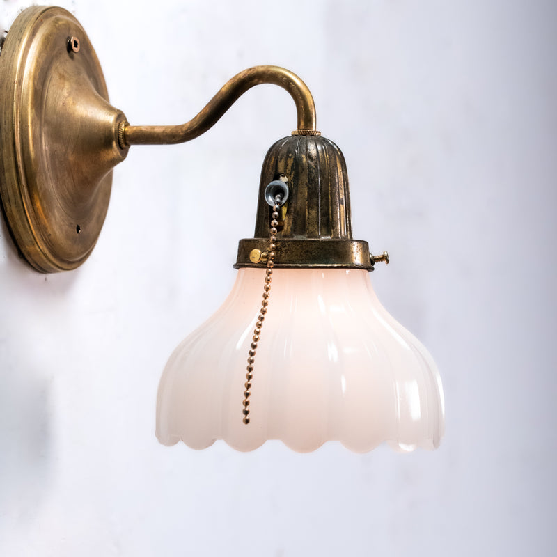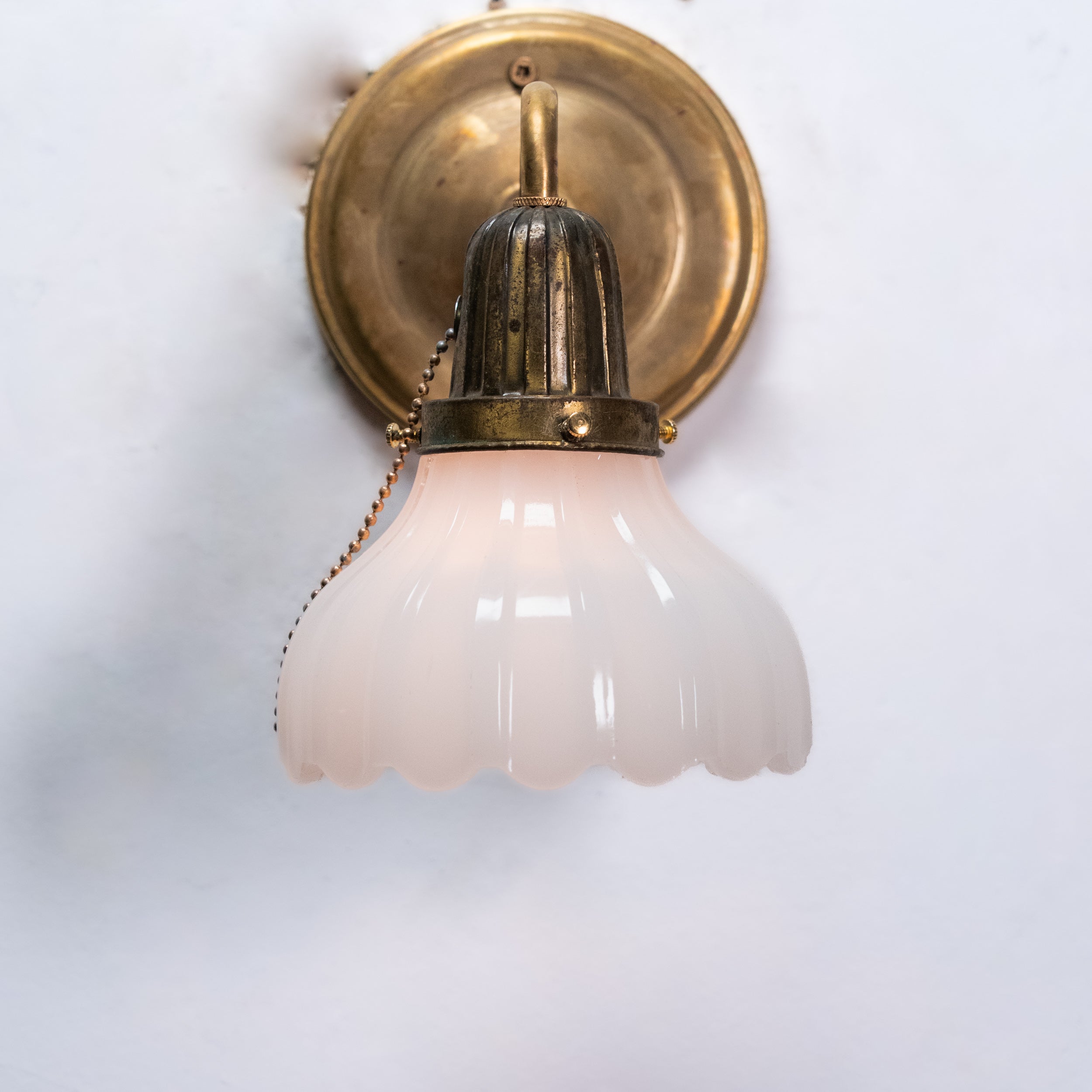 Showing incredible patina on the unique brass fitter, this little light would complement any room one choses to put it in.