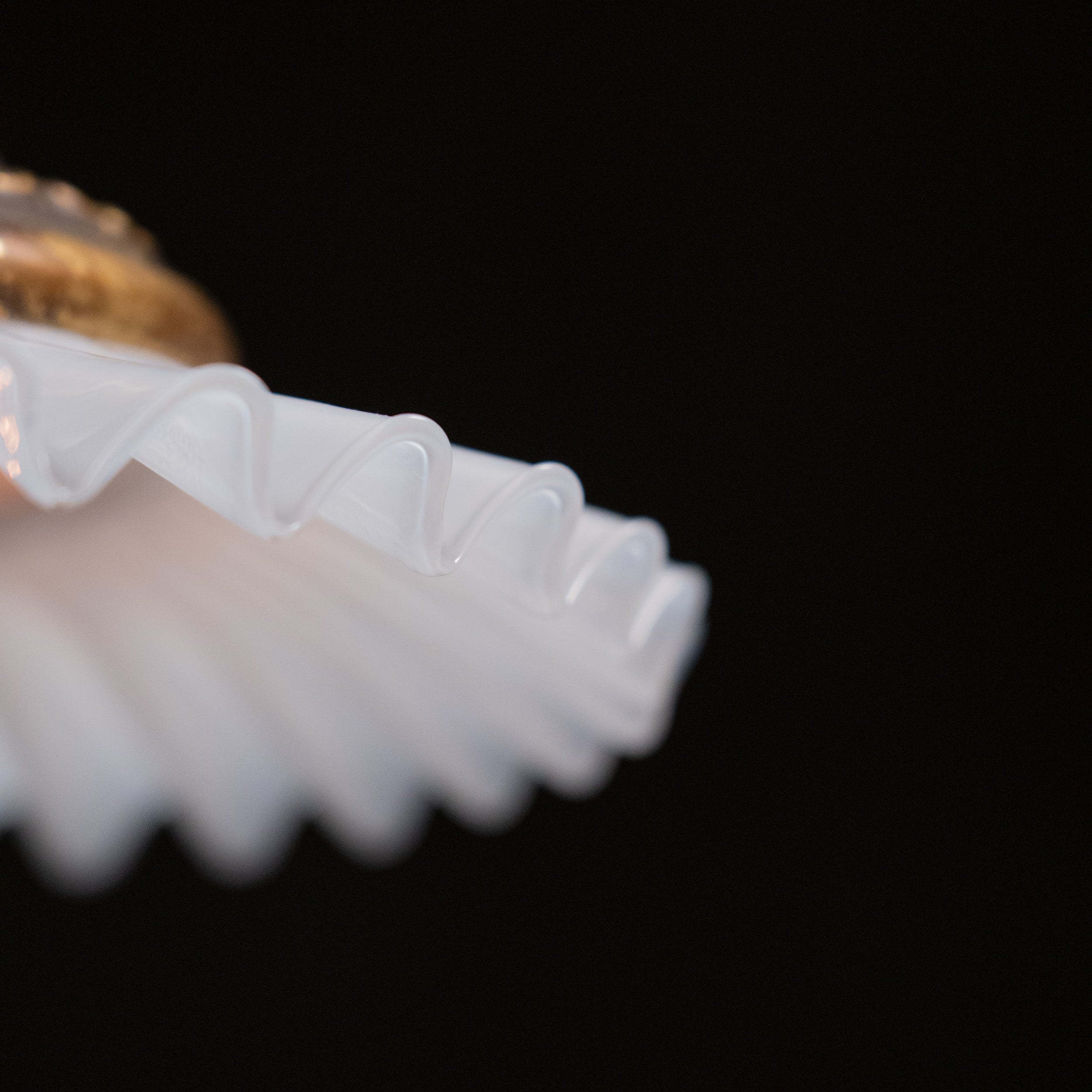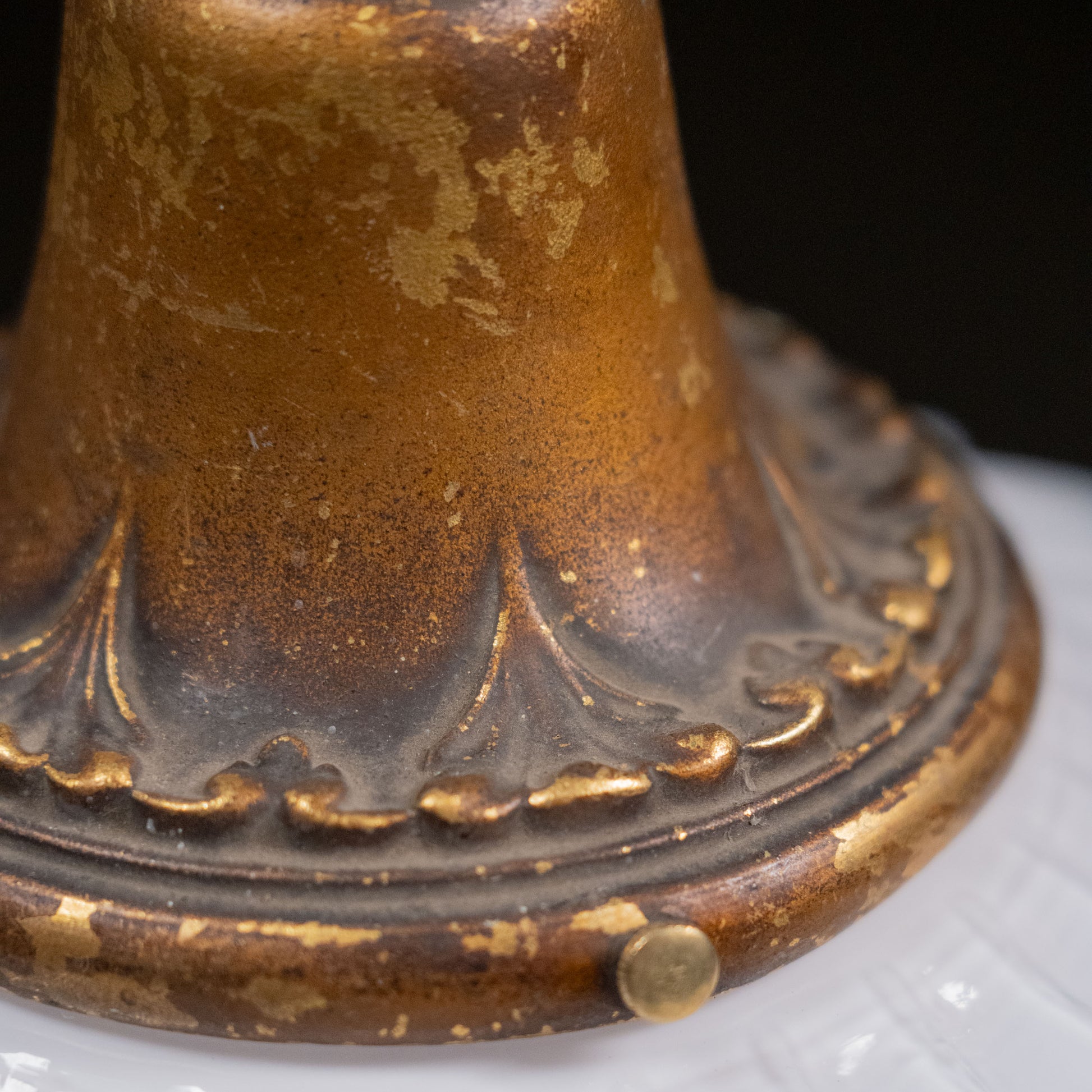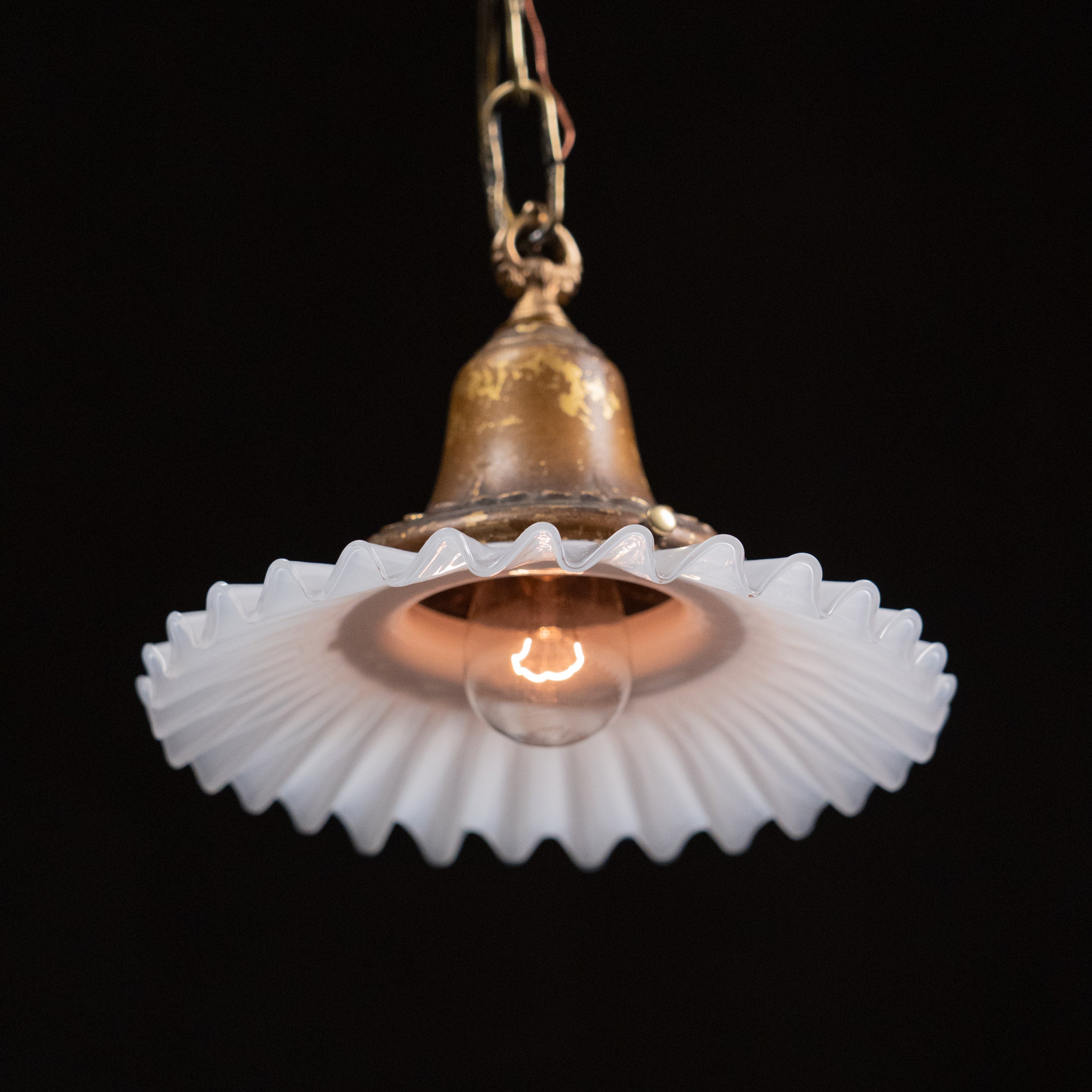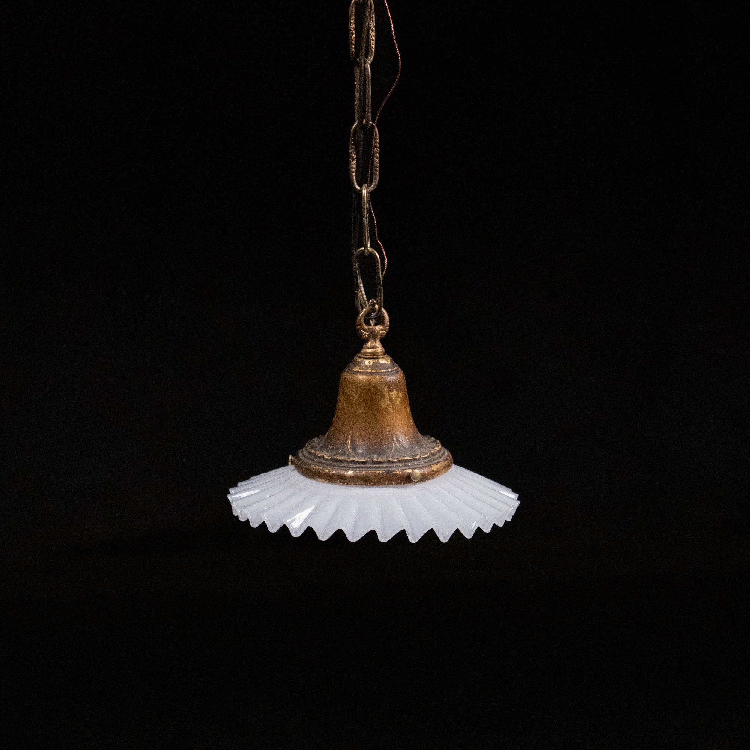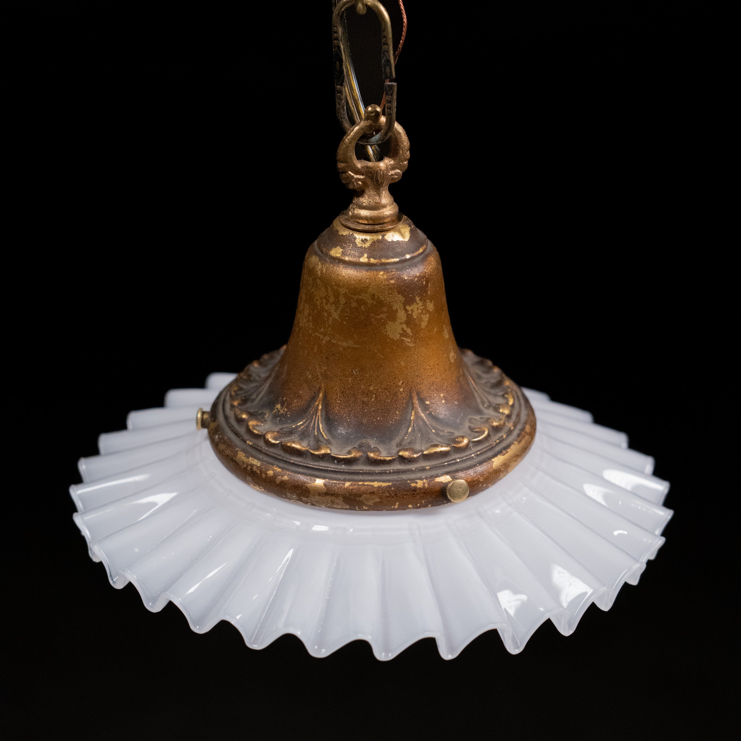 Excellent little light with brass embossed fitter on unique milk glass shade.