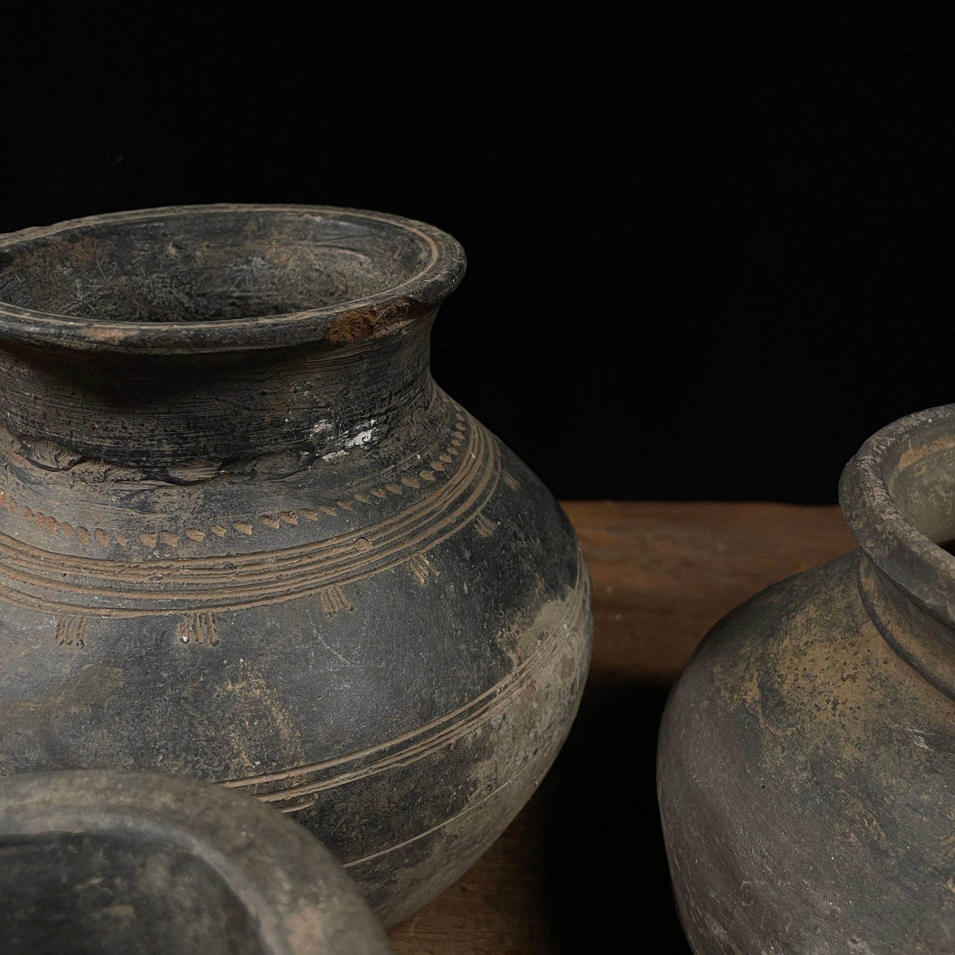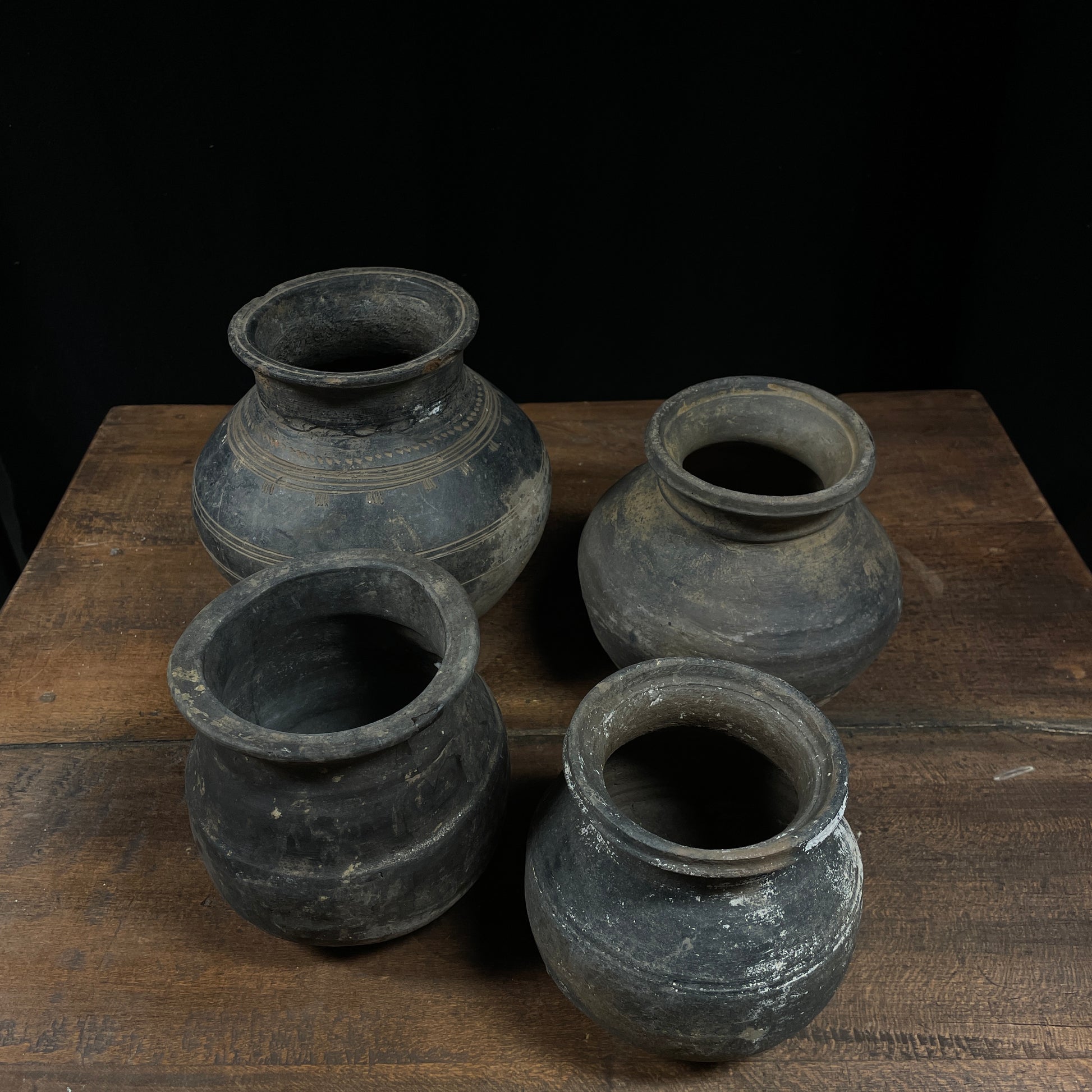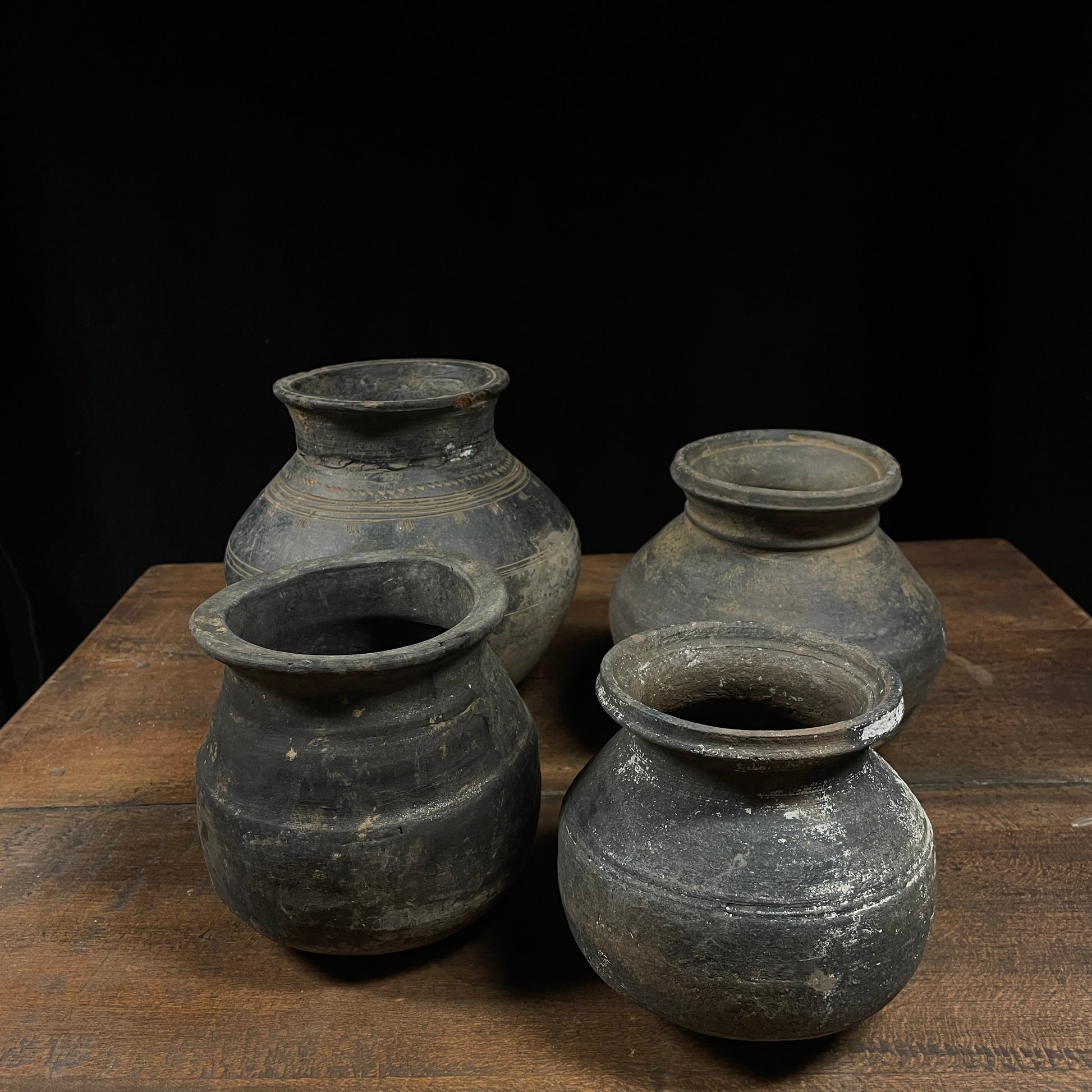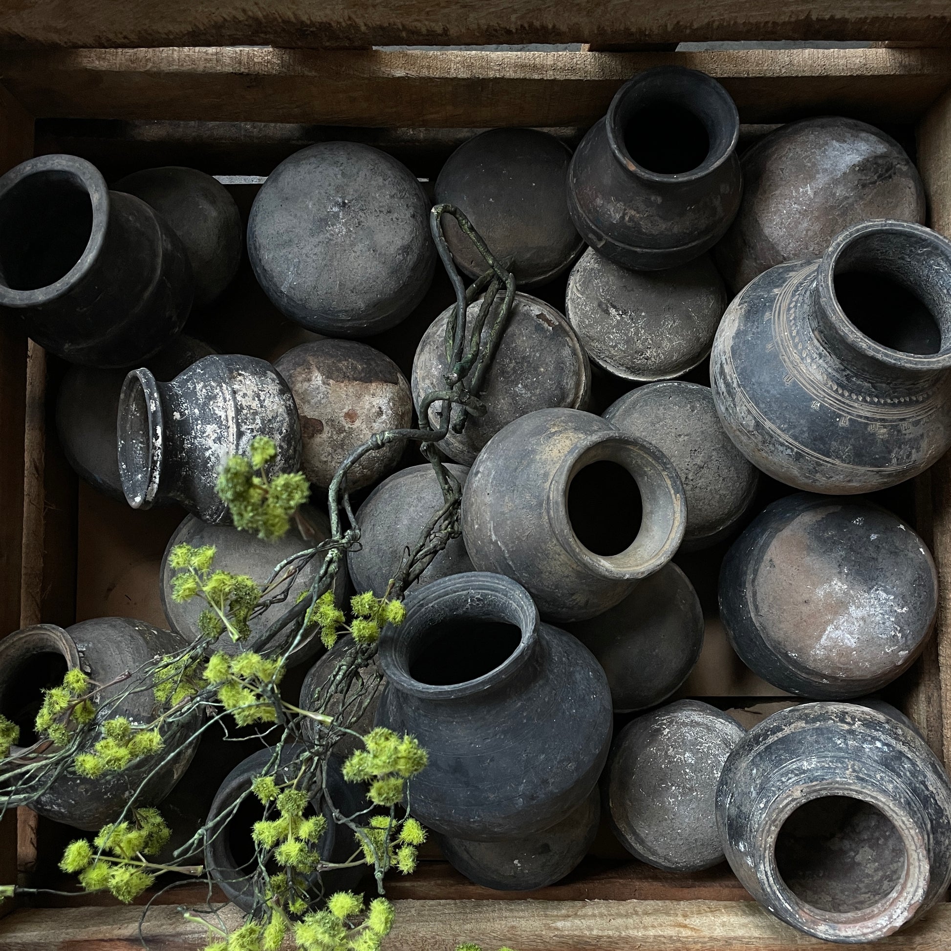 Hand selected group of rustic dark clay pots that are all handmade. They are decorative and unique stoneware vessels. We have a limited quantity.