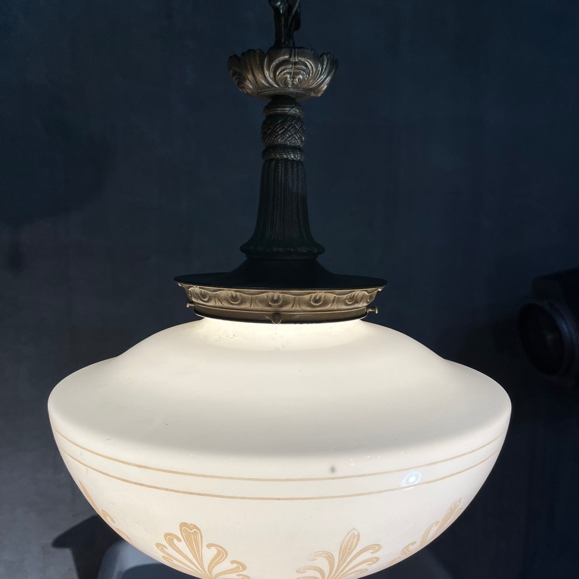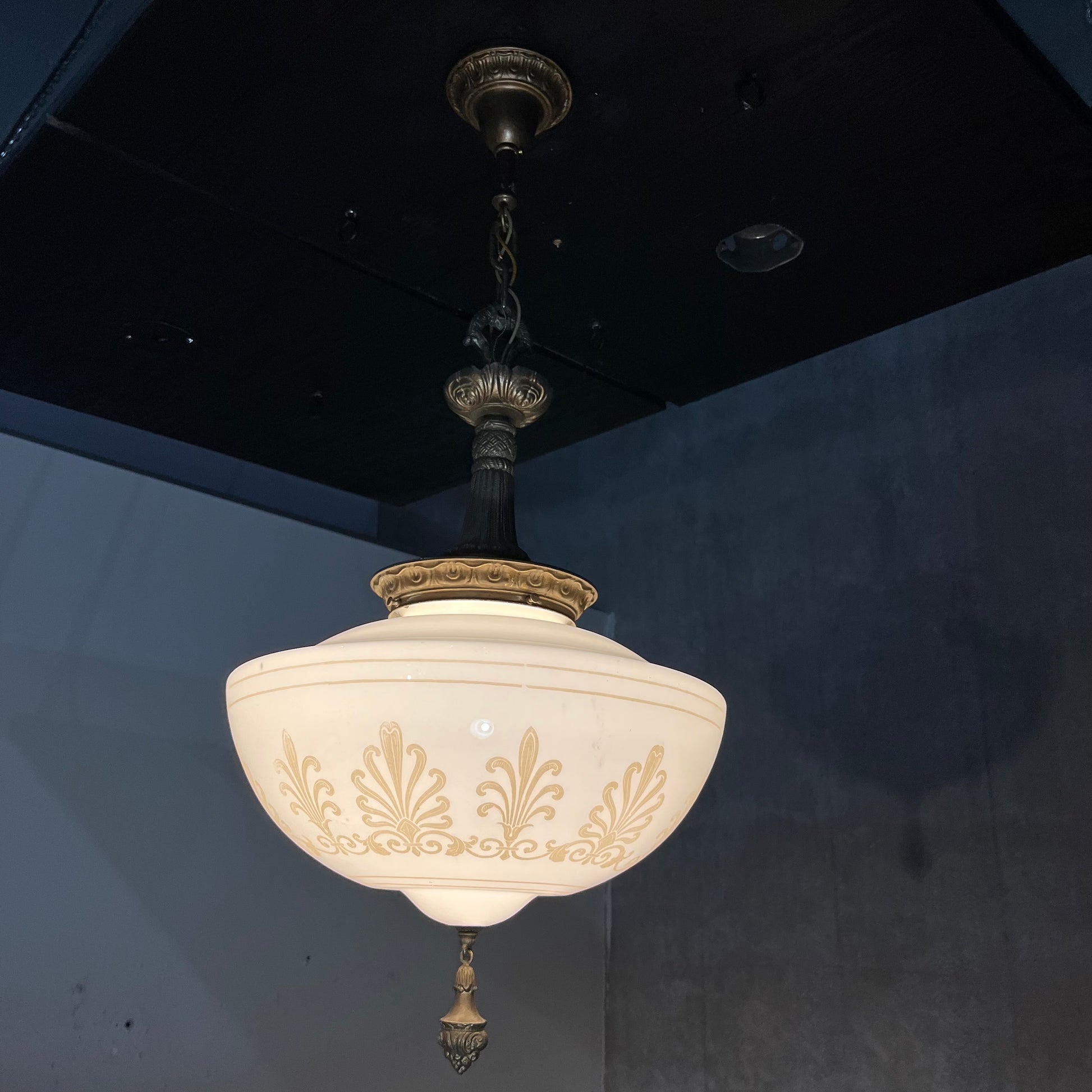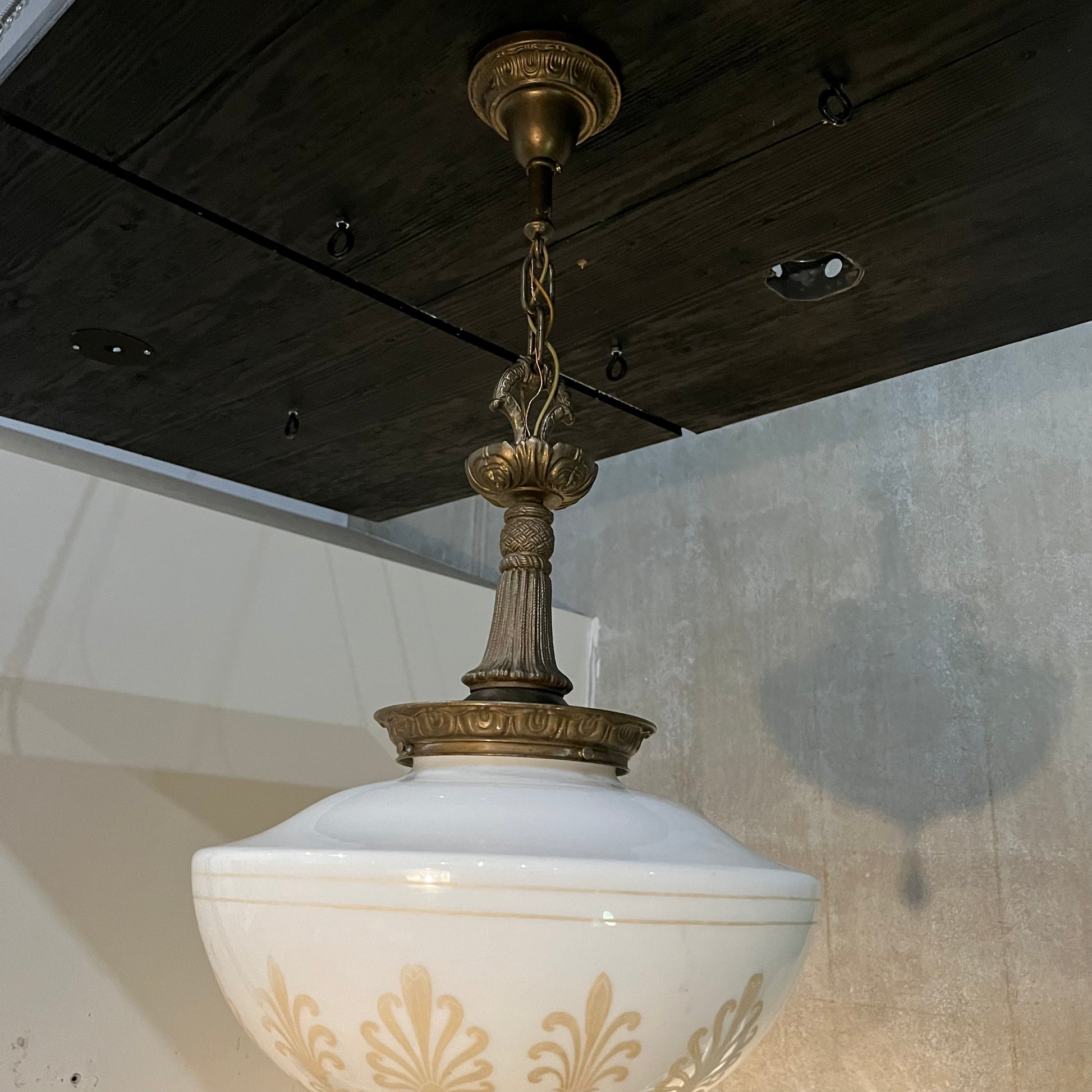 1920 empire Solid brass milk. Glass pendant