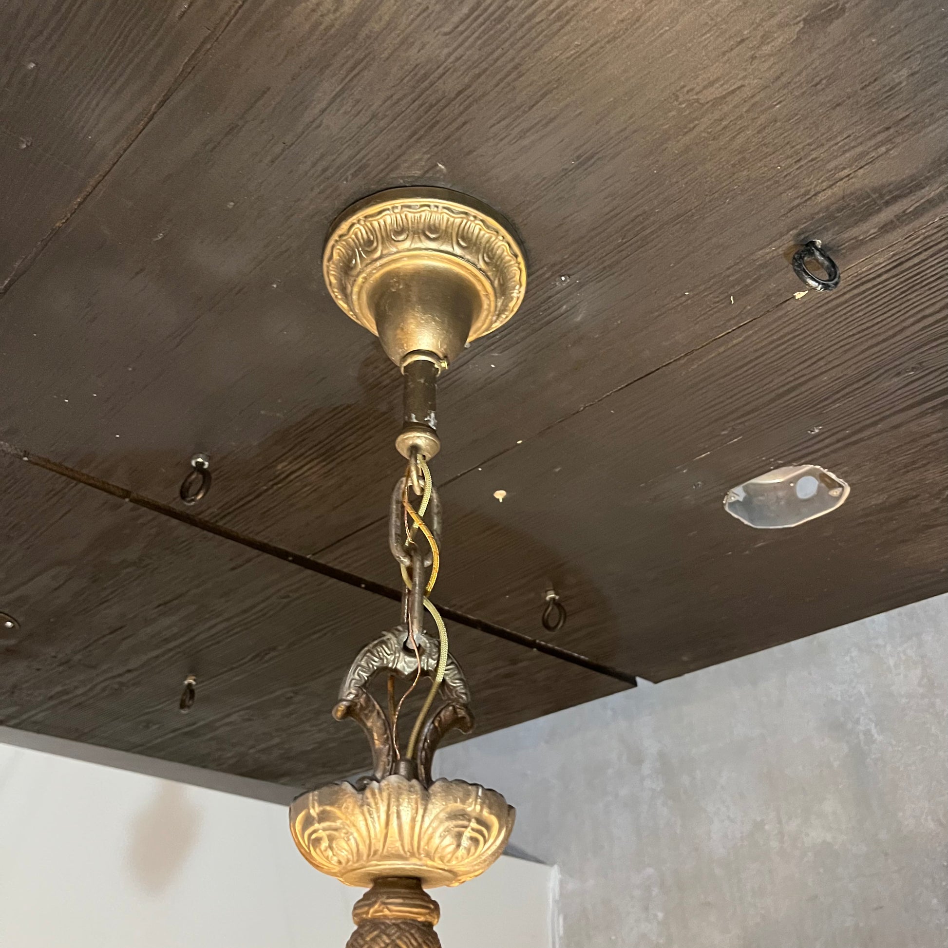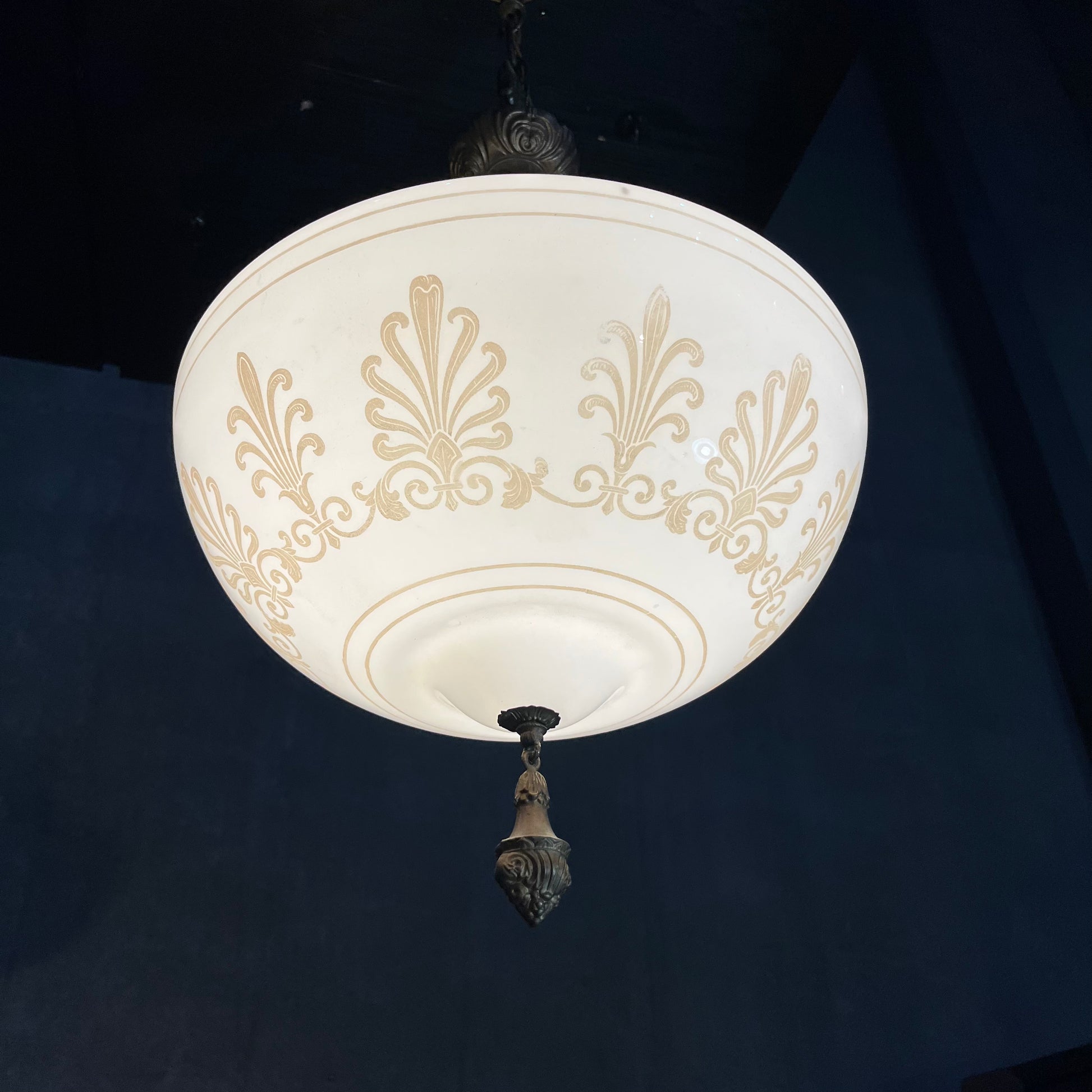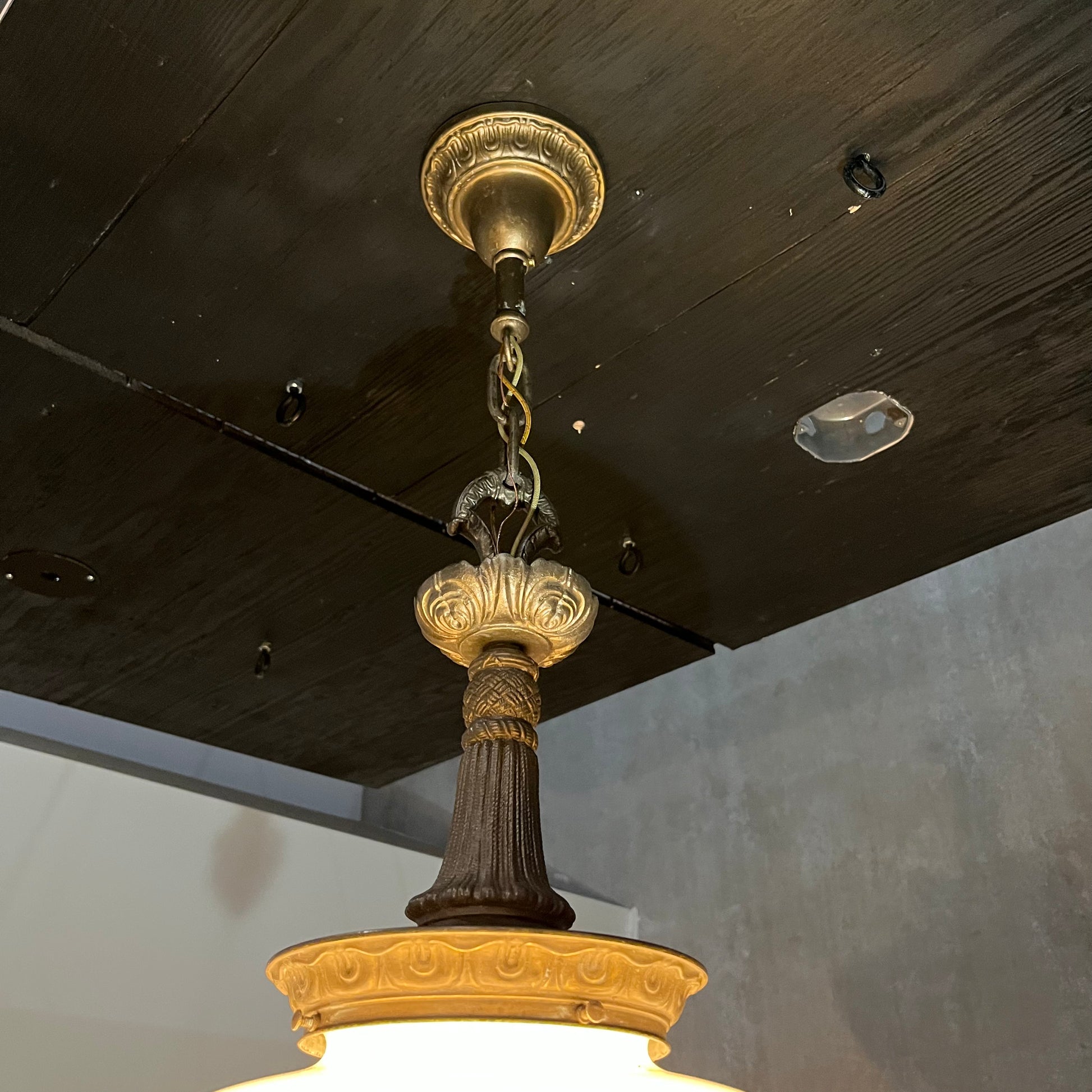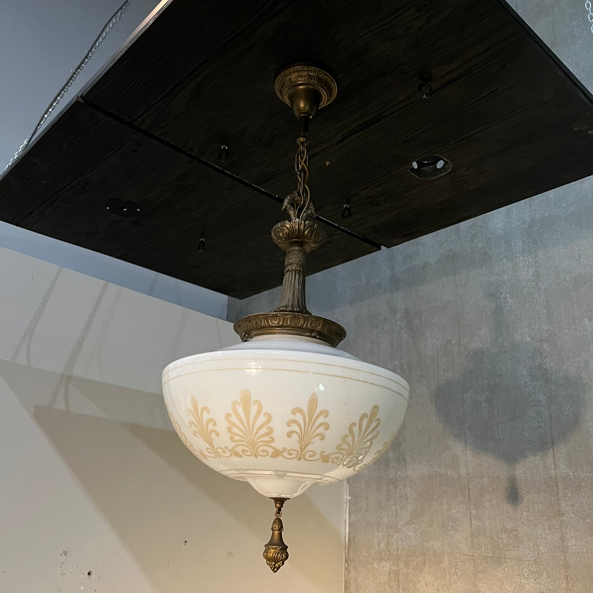 1920 empire Solid brass milk. Glass pendant