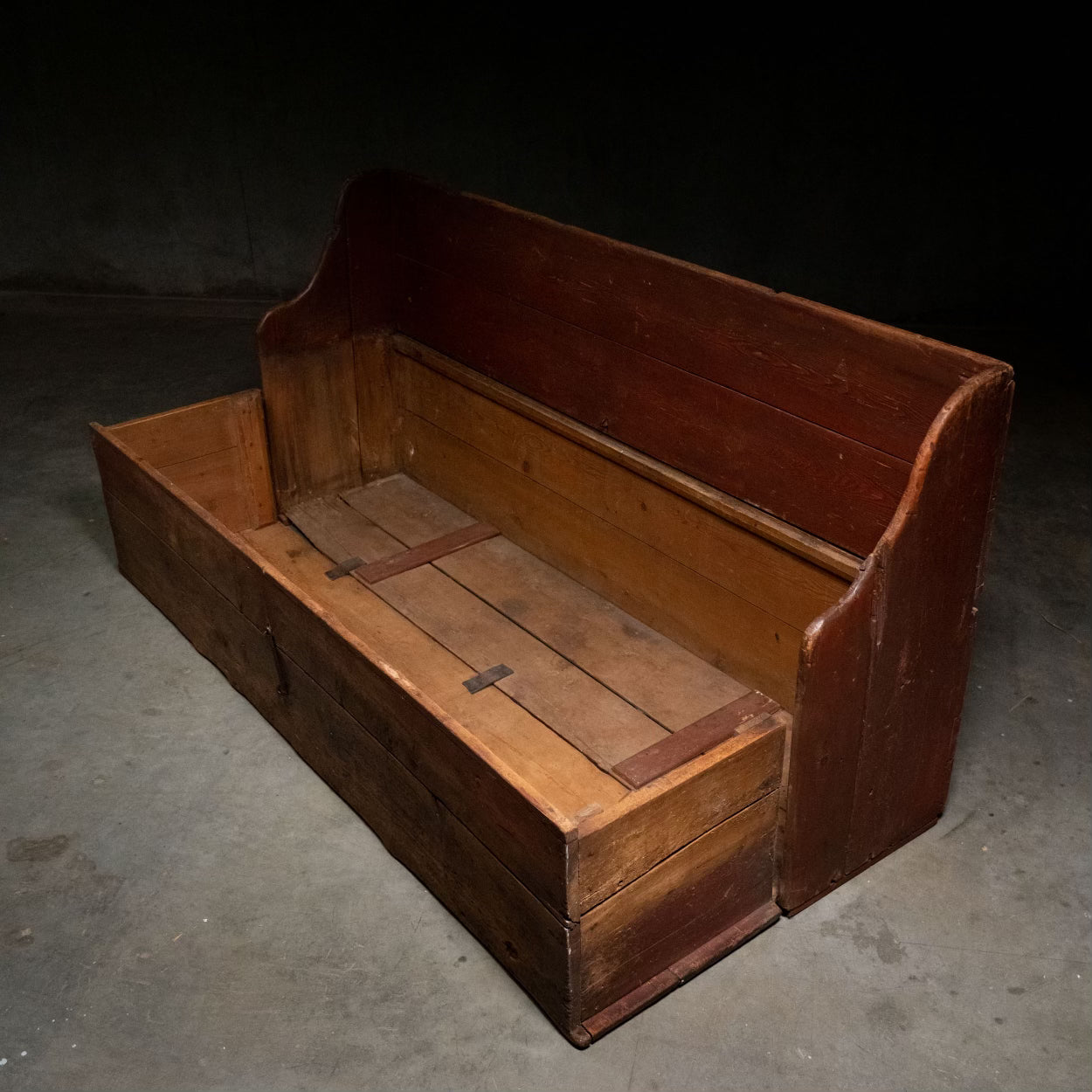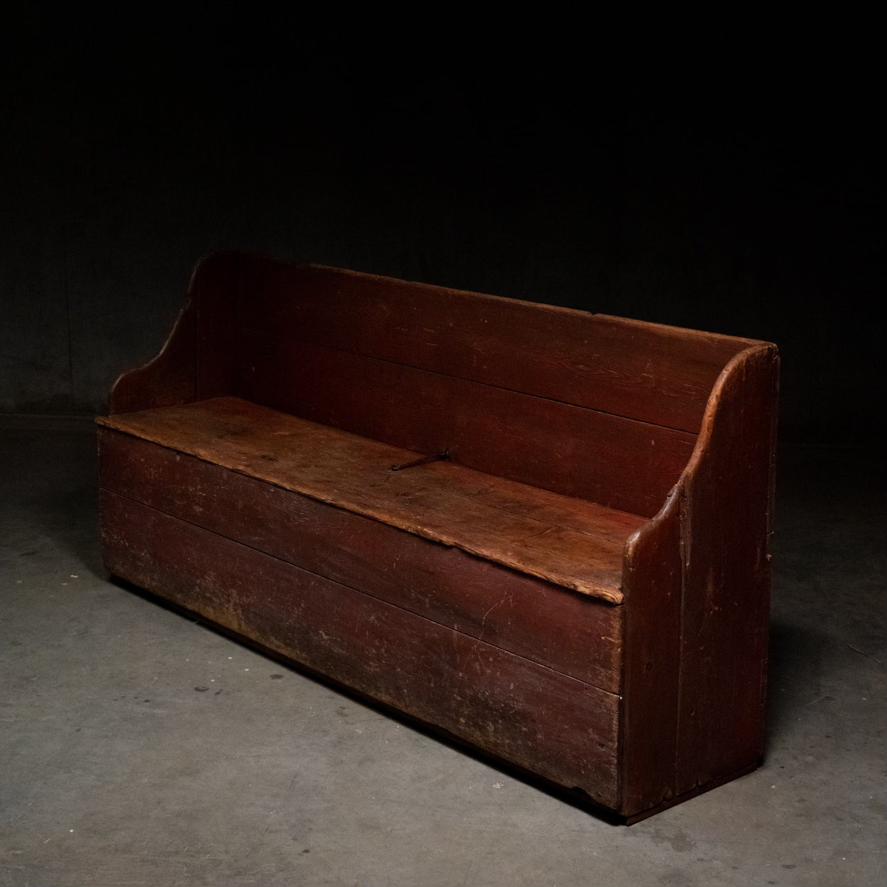 An incredible survivor of early 19th century CANADIANA. Known as a 'BANC-LIT'. COMMON AMONG SETTLERS AND HOUSEHOLDS throughout the 19th century. This example is in old original finish, primitive and simple in form .. amazing piece.