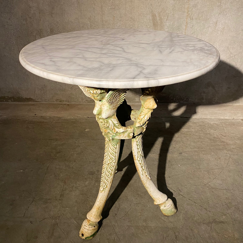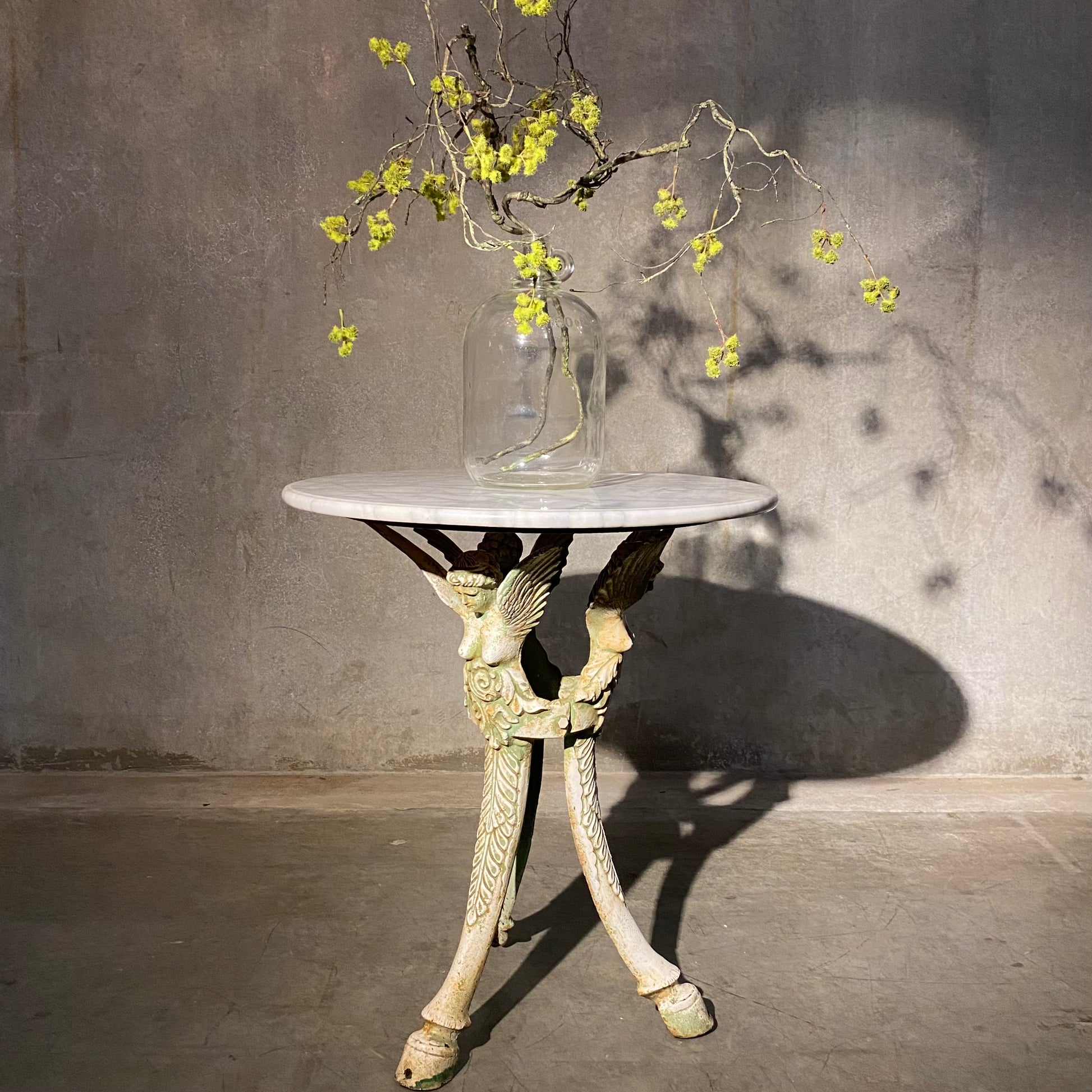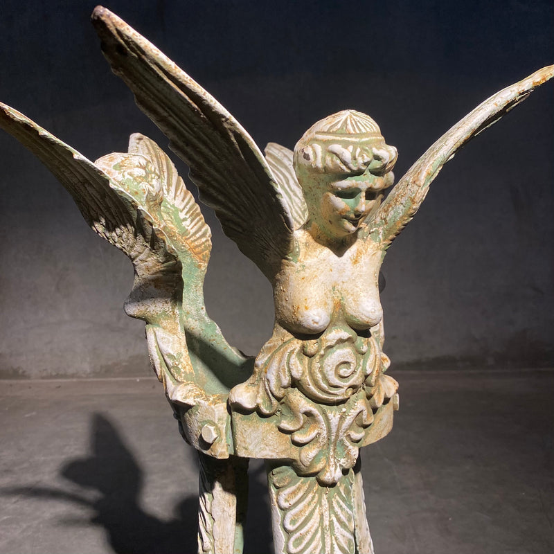 This piece features Three Beautiful Winged Woman on it's base, Horse Leg Detail with a White Marble Top.