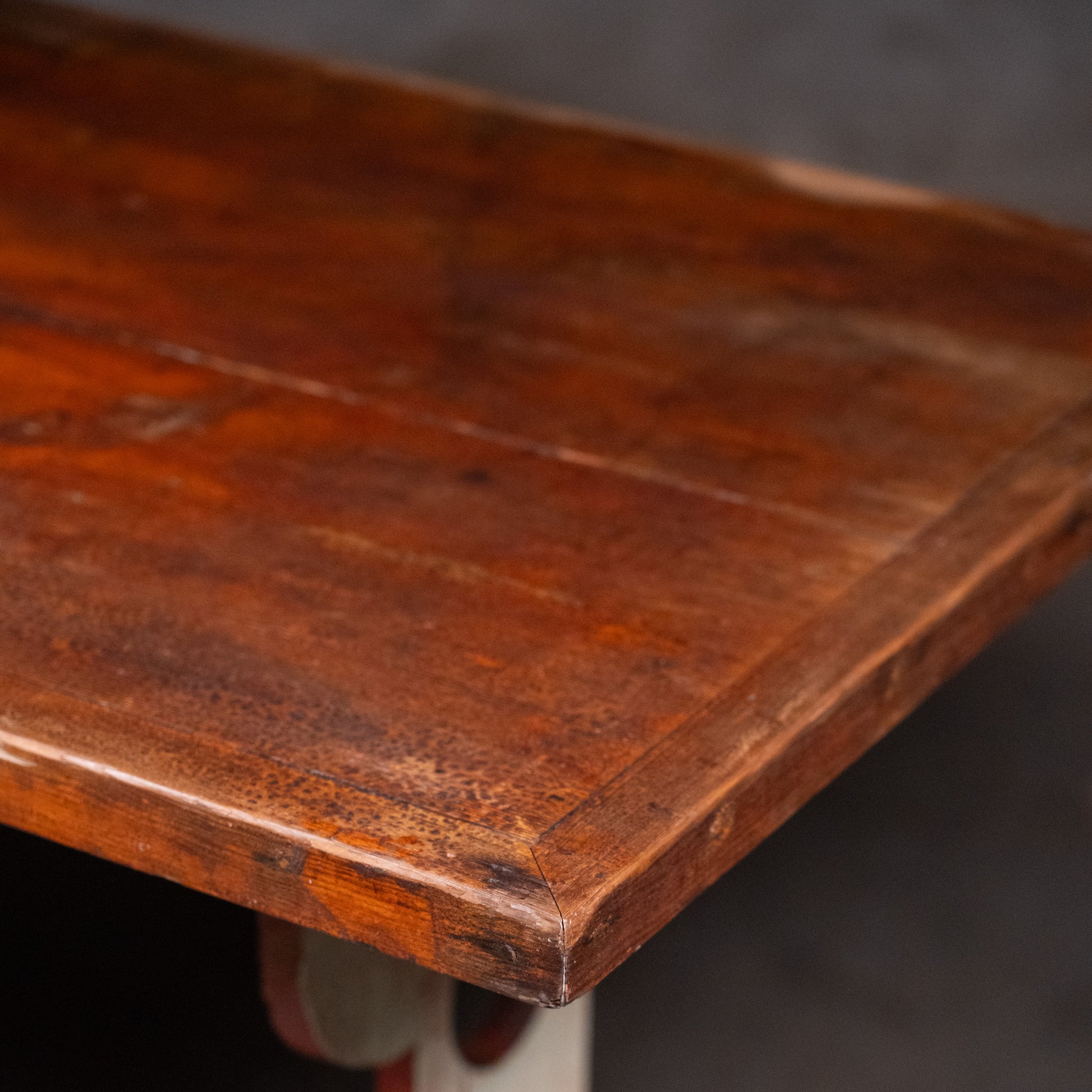 Late 19th Century Country Painted Pine Trestle Farmhouse Table with Folk Cut-Out Base