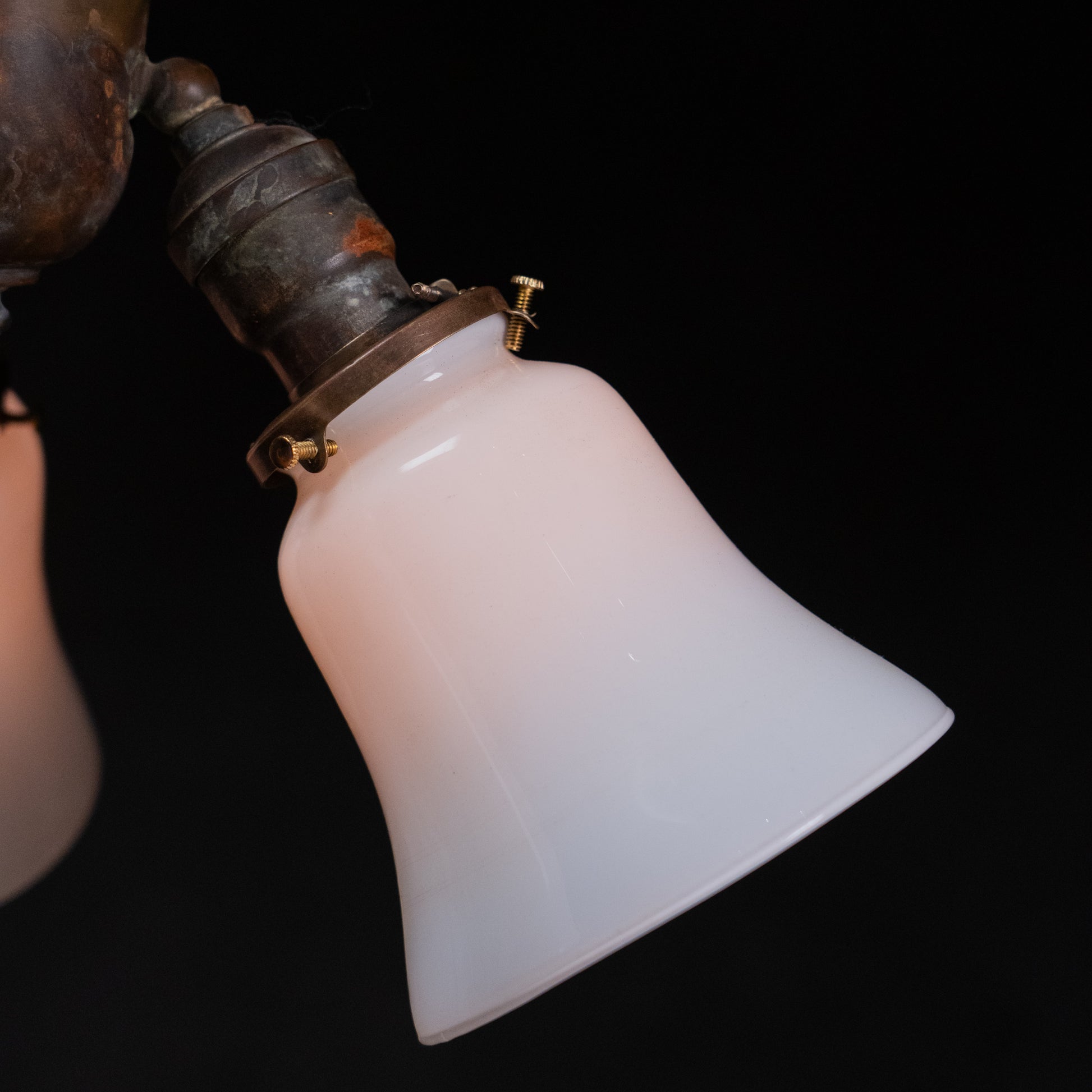 Designed as a factory-electric fixture from the outset, this piece was not converted from gas. The articulated arms allow for subtle adjustment of the light direction, a practical feature typical of early American electric lighting.