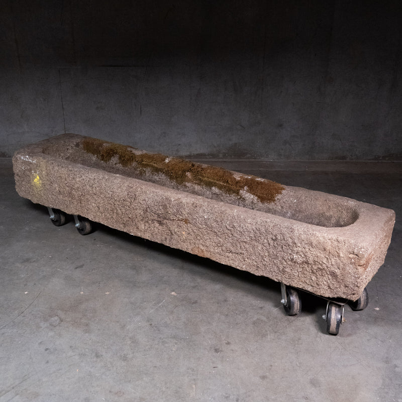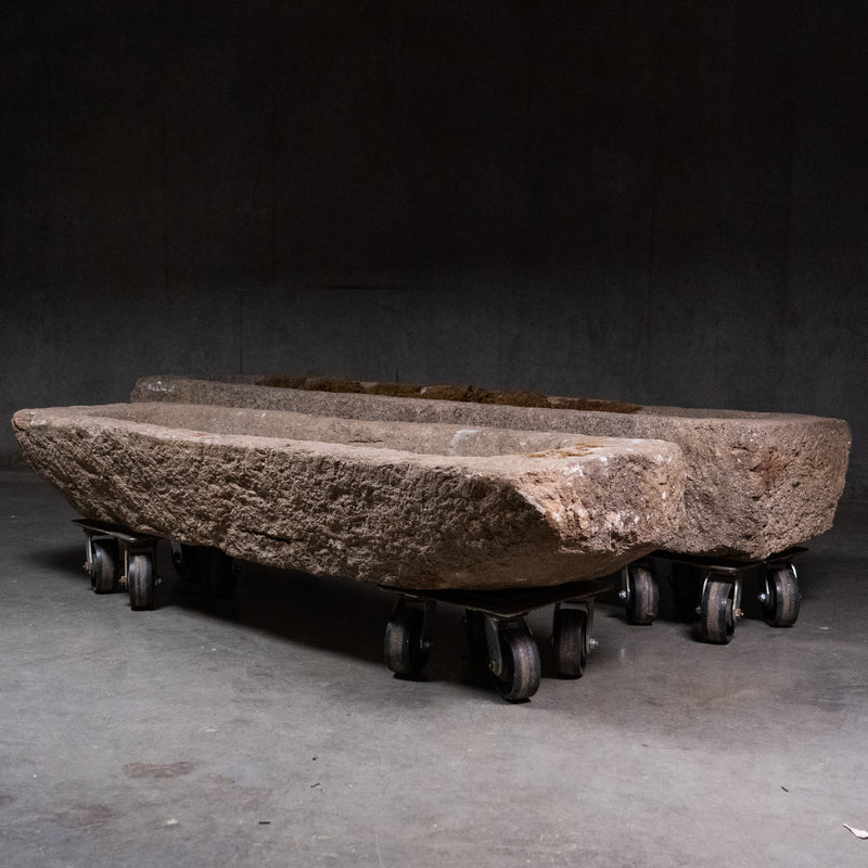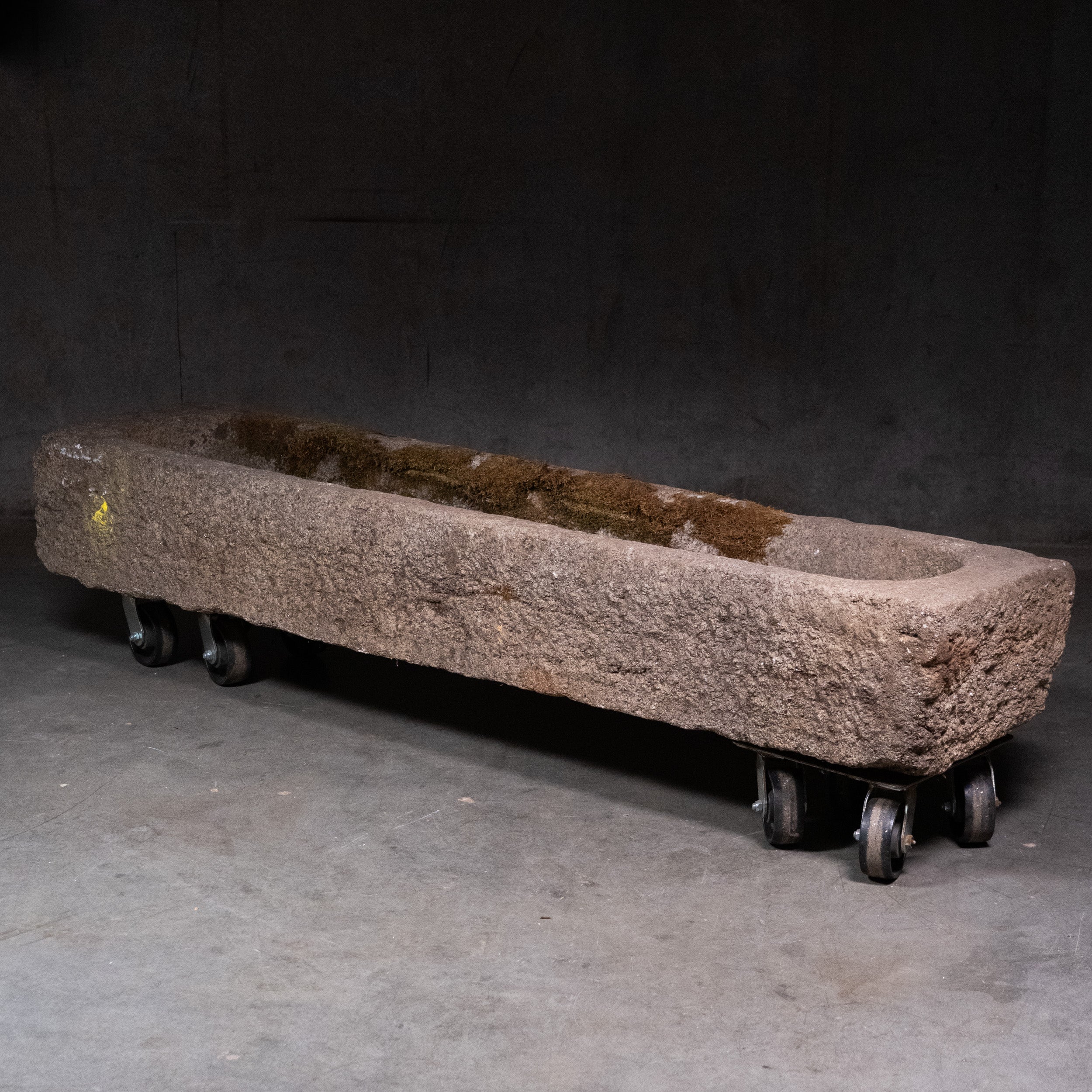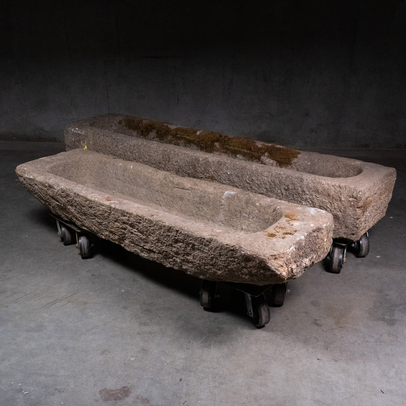 Originally used as agricultural or water troughs, they now translate beautifully as statement garden planters, water features, or sculptural landscape elements. Their scale and authenticity make them ideal for both traditional European-style gardens and modern minimalist settings seeking texture and age.