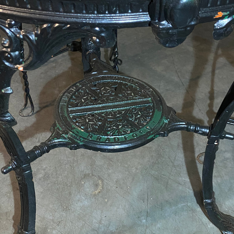 Beautiful Ornate, Three legged, Cast iron round pub table by Lund & Reynolds Ltd. of Bradford, England.