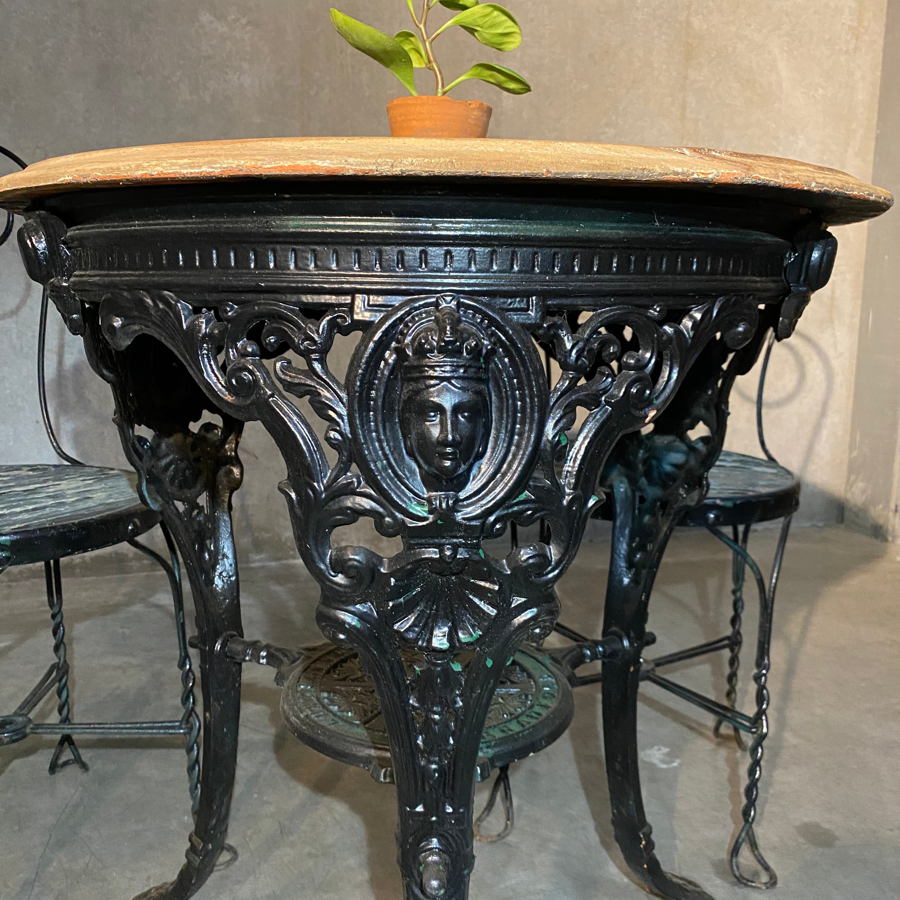 The Britannia style of table became popular in Public Houses from the middle of the 19th Century. The Britannia name came from the use of an image of “Britannia” cast into the top of each table leg, making them a patriotic reminder of the Victorian era. This style could be found is several foundries across the Midlands & Yorkshire in pubs and hotel fritters. One of the most prolific suppliers of this style being Lund & Reynolds Ltd.