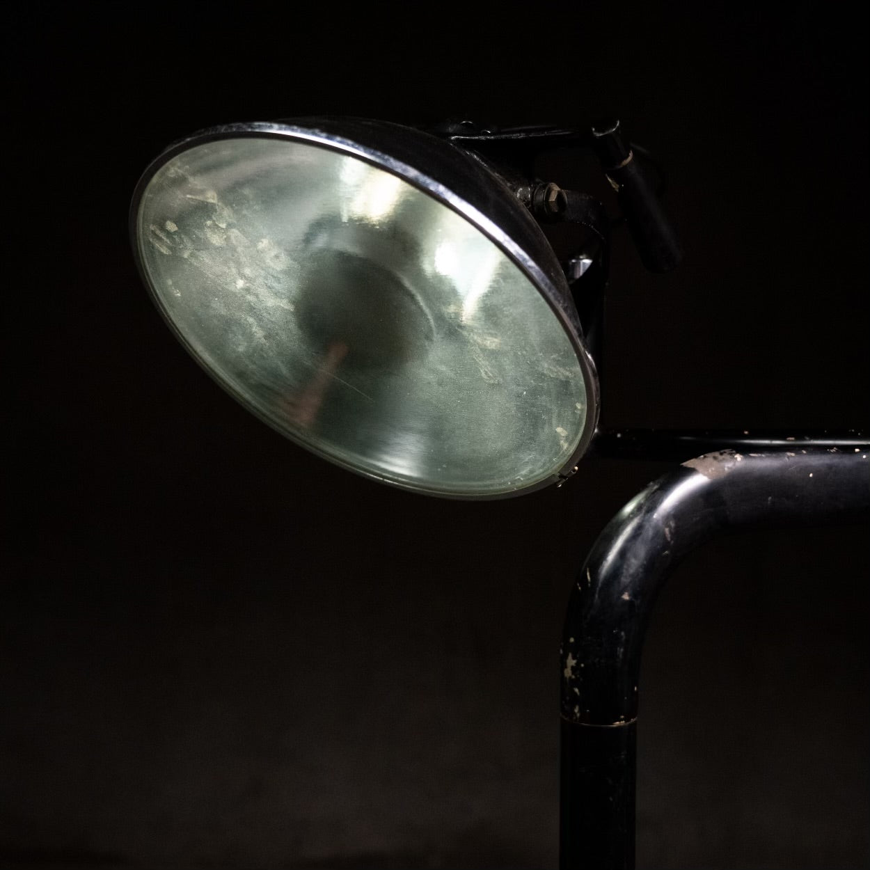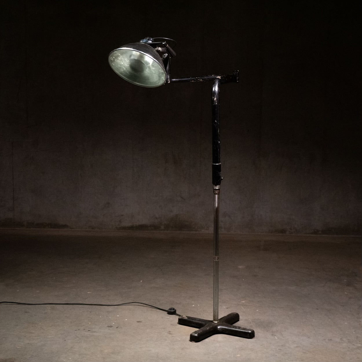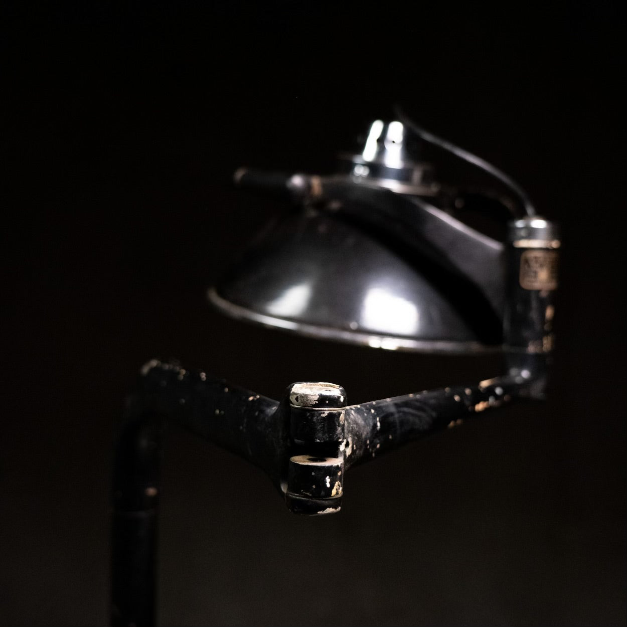 A rare 1930s dentist's operating light originally made by 'Wilmot Castle Company' in New York. A real collector piece, this impressive light has been sensitively restored by hand retaining all of its original features and paint finishes which have been waxed and sealed. With working lateral rotation this is ideal as a task light.
