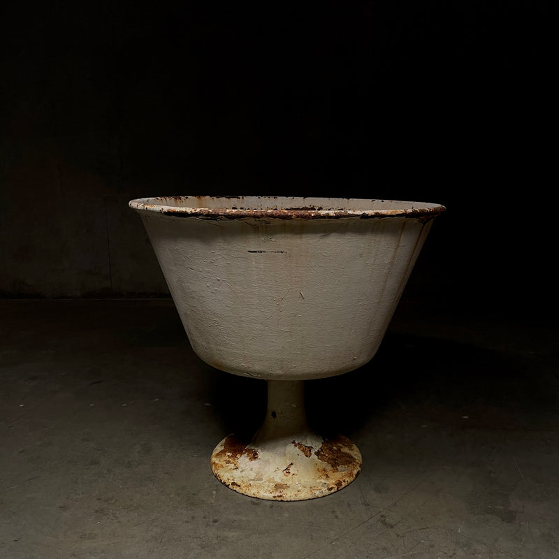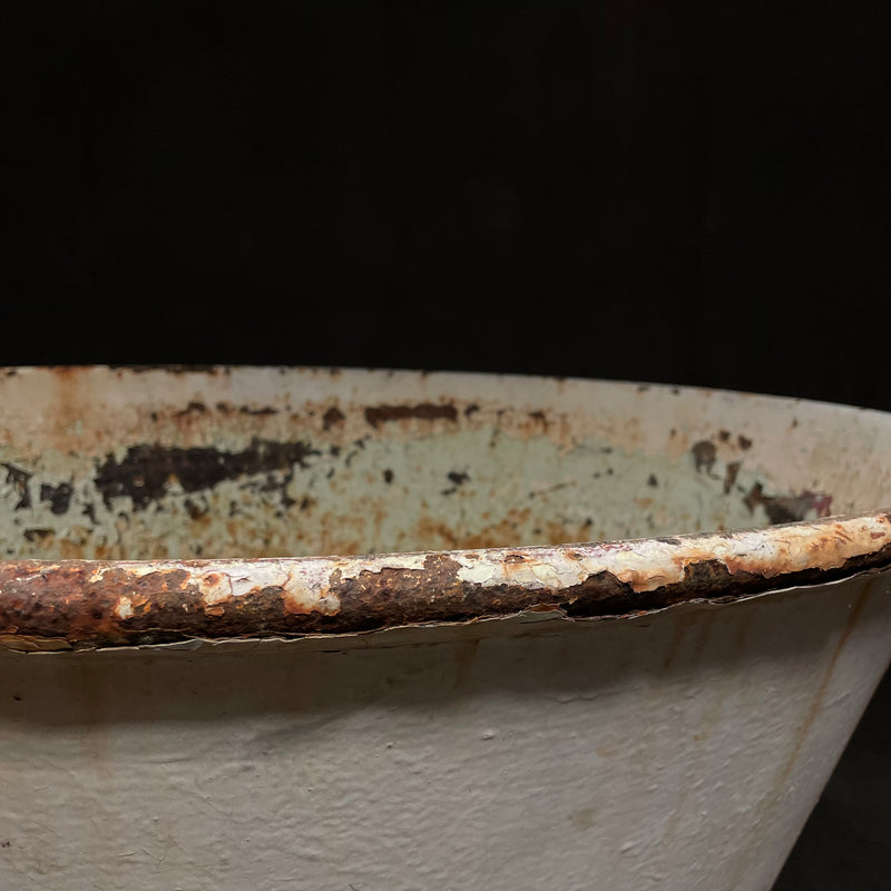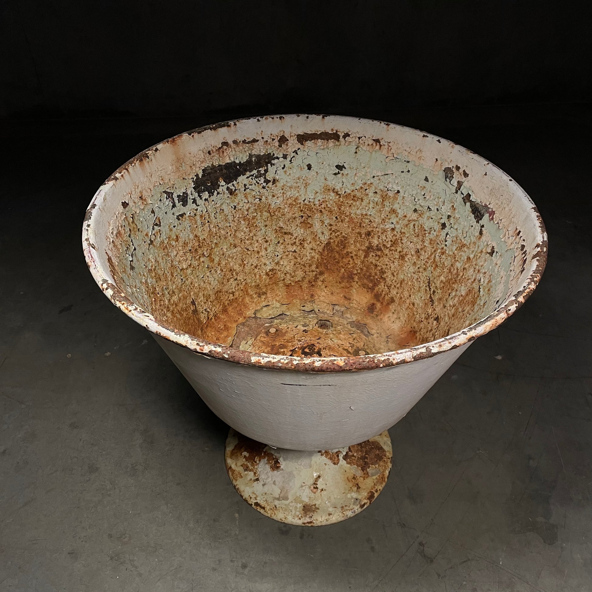 A very large cast iron urn ideal as a center piece or covert as a water feature, retaining old white finish. This is a simple but elegant rare item. Perfect center piece for any patio garden.