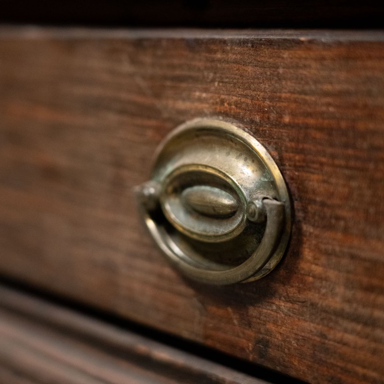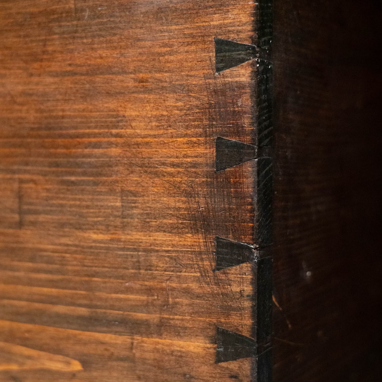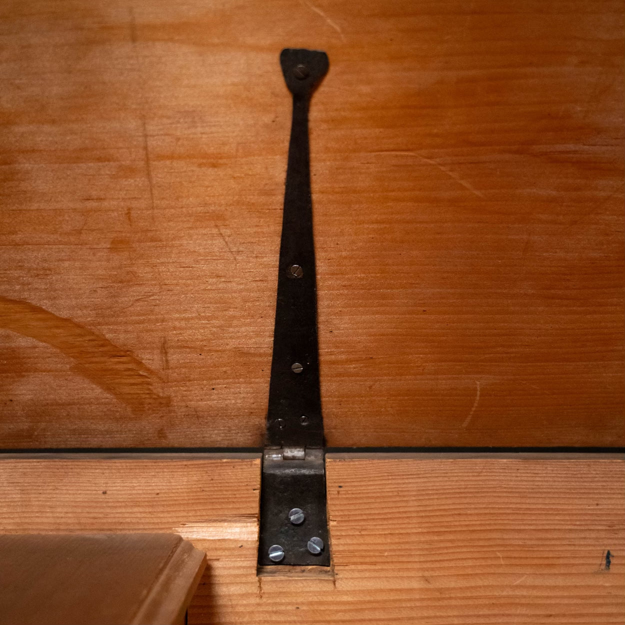 Note the full dovetailed construction throughout the entire piece, forged hinges and brass detail.