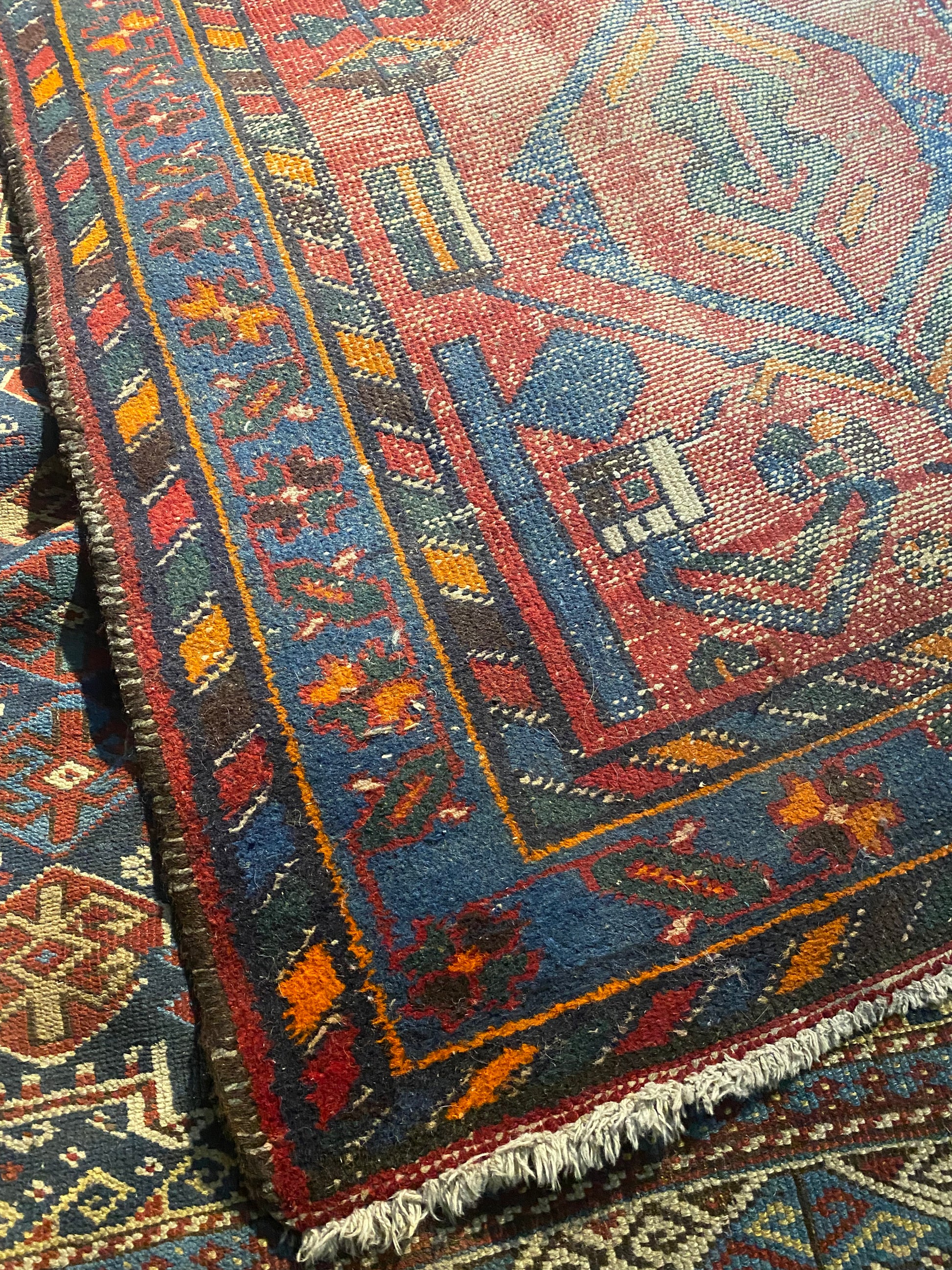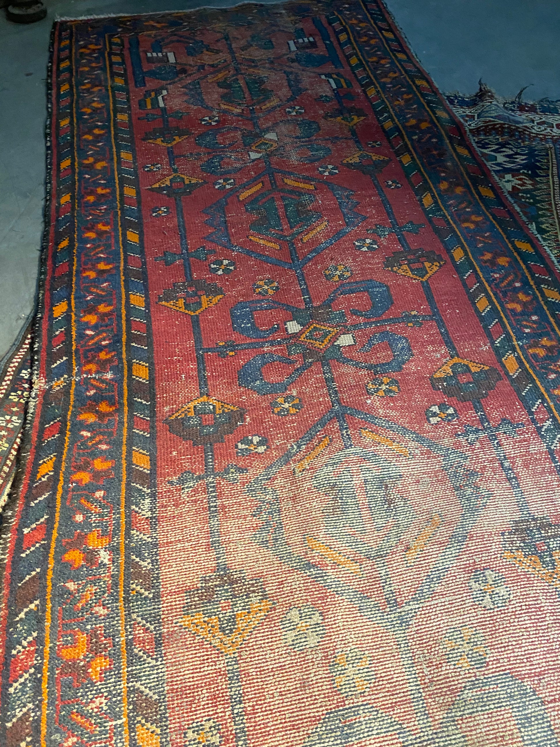 Great wear and pattern , som holes in center but easy repair if desired .. good quality rug here